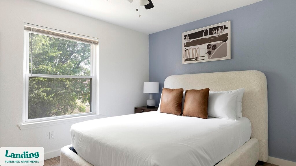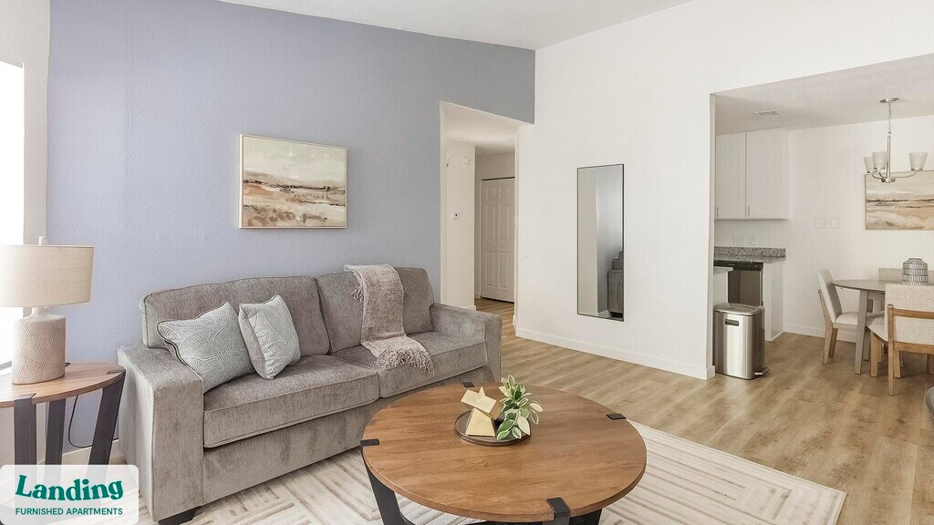 Landing offers flexible lease terms from weeks to months. Please always visit our website or contact us for the latest pricing & availability. Stay longer, save more: 6-Month Minimum base rent: starts at $2024/mo 12-Month Minimum base rent: starts at $1898/mo Landing offers flexible leases across a network of over 35,000 fully-furnished apartments throughout 375+ cities so you can rent on your terms, practically anywhere, and avoid the hassle of paying deposits or application fees. Visit to learn about all the benefits of a Landing membership, see our competitive up-to-date pricing, explore available apartments, take virtual tours, and make reservations online without jumping through traditional rental hoops. Landing's apartments at Eagle Creek Landing are designed for comfortable, easy living, with the ability to stay as long as you like. Experience living with Landing Every apartment is outfitted with all the modern essentials including: custom-designed furnishings, a fully-equipped kitchen with deluxe stainless steel appliances, a gourmet coffee maker, premium linens, Smart TVs, and incredibly fast, reliable internet for working from home. When you live with Landing, you'll enjoy a hassle-free experience with the added benefit of 24/7 access to our dedicated member experience team. Some of the nitty-gritty: a background check and proof of income are required; we're completely smoke-free; bundled utility packages and pricing vary based on length of stay; pet-friendly options available; listed price reflects a 12-month minimum stay.