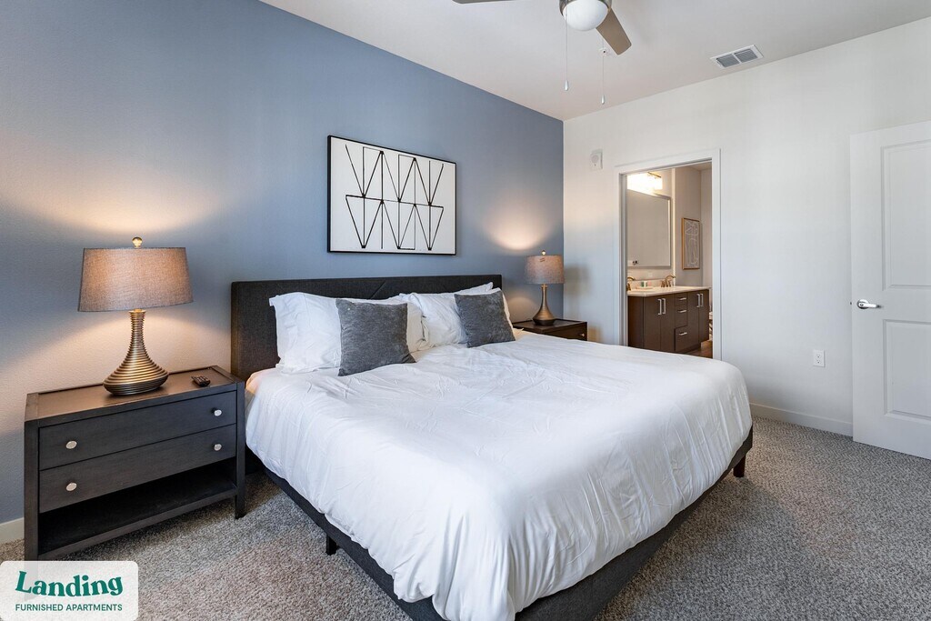 Landing offers flexible lease terms from weeks to months. Please always visit our website or contact us for the latest pricing & availability. Stay longer, save more: 6-Month Minimum base rent: starts at $2260/mo 12-Month Minimum base rent: starts at $1810/mo Landing offers flexible leases across a network of over 35,000 fully-furnished apartments throughout 375+ cities so you can rent on your terms, practically anywhere, and avoid the hassle of paying deposits or application fees. Visit to learn about all the benefits of a Landing membership, see our competitive up-to-date pricing, explore available apartments, take virtual tours, and make reservations online without jumping through traditional rental hoops. Landing's apartments at Solaris at Kissimmee are designed for comfortable, easy living, with the ability to stay as long as you like. Experience living with Landing Every apartment is outfitted with all the modern essentials including: custom-designed furnishings, a fully-equipped kitchen with deluxe stainless steel appliances, a gourmet coffee maker, premium linens, Smart TVs, and incredibly fast, reliable internet for working from home. When you live with Landing, you'll enjoy a hassle-free experience with the added benefit of 24/7 access to our dedicated member experience team. Some of the nitty-gritty: a background check and proof of income are required; we're completely smoke-free; bundled utility packages and pricing vary based on length of stay; pet-friendly options available; listed price reflects a 12-month minimum stay.