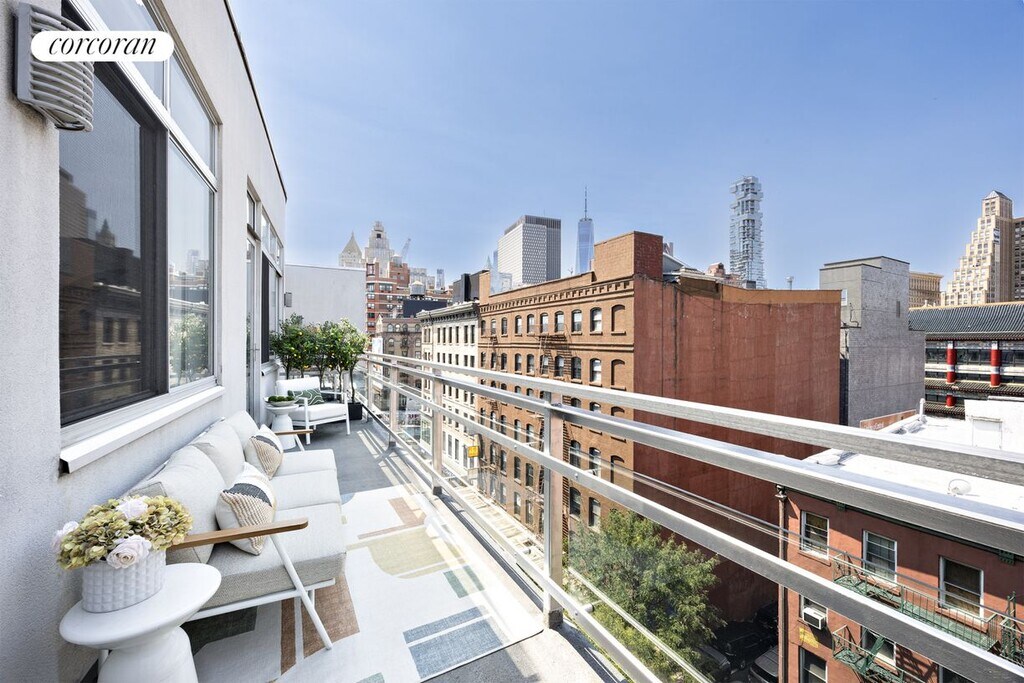 NOTE: Taxes reflect primary residence discount Nestled in the crossroads of SoHo, Nolita, and Tribeca, enjoy effortless convenience in this sprawling three-bedroom, three-and-a-half-bathroom penthouse with private outdoor space.Boasting a spacious 3,045 square feet, this home is accessed by a private key-locked elevator. The sprawling open-plan living area is flanked by two private terraces, perfect for relaxation and entertaining.The contemporary cook's kitchen showcases modern design, featuring abundant cabinetry and counter space, a built-in breakfast nook, and top-of-the-line appliances including a Subzero refrigerator and wine cooler, double Miele dishwashers, double gas ranges, and a built-in coffee maker.The thoughtful layout positions three generously sized bedrooms on the South-East side of the unit, each with direct access to a private terrace. The large primary bedroom suite boasts a dressing room, walk-in closet, and luxurious en-suite bathroom with custom fittings, Bardiglio marble, and a custom two-person shower.Additional features of this exceptional home include automated blinds, California Closet storage solutions throughout, and an in-unit W/D.This full-service boutique condominium offers residents a 24-hour doorman, fitness center, resident roof deck, and on-site parking garage. With unbeatable transportation access, including the N/Q/R/6/J/Z/B/D train lines just blocks away, this penthouse is the epitome of downtown living.