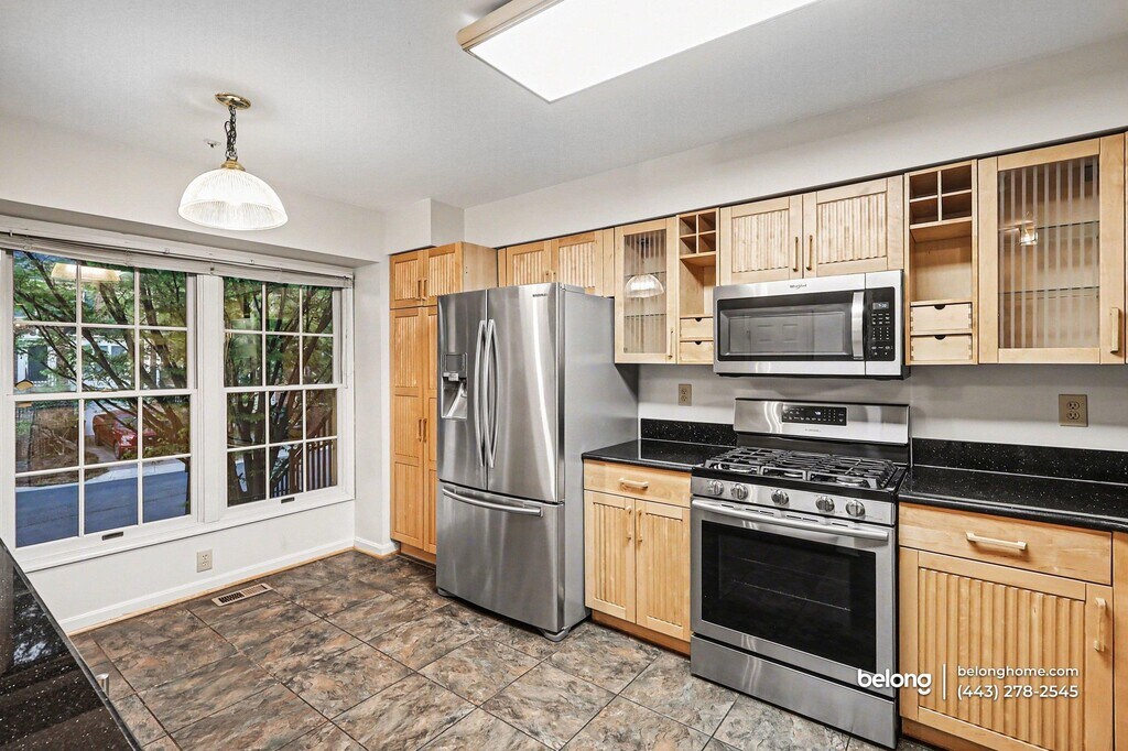 This spacious 4-bedroom, 2 full and 2 half-bath townhome in Gaithersburg delivers 2,158 square feet of well-designed living across multiple levels, with standout finishes and a private outdoor deck that make it an exceptional find in the DC metro suburbs. The main living level impresses immediately, with gleaming hardwood floors, crown molding, and an open layout that connects the living and dining areas effortlessly. A chandelier anchors the dining space, and a pass-through window to the kitchen adds a charming, functional touch. The kitchen is well-appointed with light maple cabinetry, dark granite countertops, stainless steel appliances including a gas range, a skylight that floods the space with natural light, and a built-in wine cooler for effortless entertaining. Upstairs, the bedrooms offer plush carpet, ceiling fans, and generous windows, with the primary suite providing a comfortable private retreat. The lower level adds valuable bonus space with a cozy carpeted room, ideal for a home office, media room, or guest suite. Out back, a large wood deck with stairs leading to a green yard creates a great setting for outdoor dining and relaxing. Located near the I-270 and MD-370 interchange, commuting throughout Montgomery County and into Washington, DC is seamless, with everyday conveniences and shopping close at hand. *Fireplace is for decorative use only and cannot be used without consent from Belong. *Our homes come as-is with all essentials in working order. Want upgrades? Request it through the Belong app, and our trusted pros will take care of the rest!
