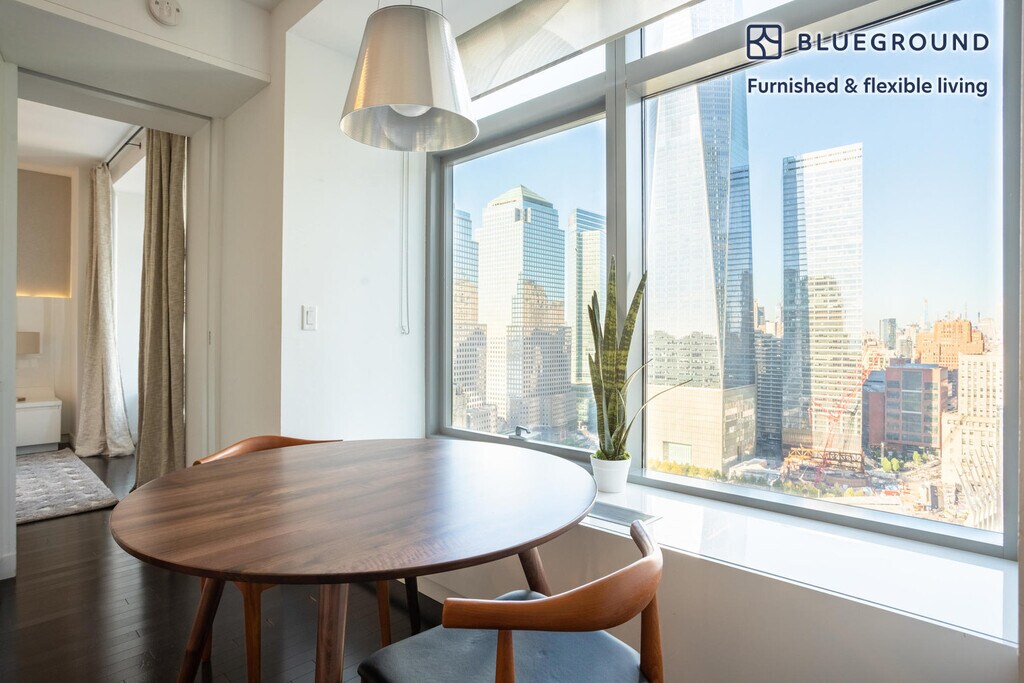 Ofrecemos precios personalizados por cualquier duración. Las tarifas pueden variar según las fechas exactas de mudanza. La tarifa para esta casa comienza en $5,480* / mes. Visita nuestro sitio web e ingresa tus fechas de estadía para ver los precios actualizados para tu reserva específica. *El precio cotizado es: (1) según la mudanza en el primer día en que el apartamento está disponible, (2) aplica solo si se factura por adelantado, puede ser más alto si se factura en múltiples pagos, (3) exclusivo de cualquier impuesto o servicio público. ¡Se admiten agentes inmobiliarios! Pagamos un 5% de comisión sobre el alquiler. Descubra lo mejor del centro de la ciudad con este apartamento de un dormitorio en Tribeca con vista a la ciudad desde una de las plantas más altas del hotel. Será fácil simplemente presentarse y comenzar a vivir en este apartamento contemporáneo amueblado en Blueground con cocina totalmente equipada, sala de estar amplia y nuestro servicio de asistencia en el terreno. (ID #NYC1374) Diseñado pensando en usted Al igual que con cualquier apartamento Blueground, encontrará un espacio cuidadosamente diseñado con hermosos muebles y una cocina totalmente equipada en este hotel de un dormitorio. Además, gracias a nuestros colchones, sábanas y toallas de primera calidad, puede relajarse sabiendo que siempre se sentirá como en casa. Cuando esté listo para divertirse, puede disfrutar del ambiente del centro de la ciudad o traerle el entretenimiento con el altavoz inalámbrico premium o el televisor inteligente. Este apartamento también ofrece lavandería en el apartamento. Servicios para dormir con cama Queen de 160 cm Los servicios del edificio exclusivos de este dormitorio incluyen: - Secadora - Ascensor - Gimnasio - Lavadora - Se permiten mascotas Llegada y asistencia continua ¡Todo el apartamento es suyo! Un miembro del equipo de Blueground te dará la bienvenida personalmente o te dará instrucciones para el auto check-in. Durante su estancia, tendrá acceso a nuestro equipo de experiencia del cliente a través de la aplicación Blueground. Puedes programar limpiezas adicionales, enviar solicitudes de mantenimiento y ver nuestras recomendaciones de vecindario con solo unos pocos toques. Compartiremos todos los detalles tras la confirmación de su estancia. Con una ubicación ideal Este apartamento amueblado se encuentra en el vibrante vecindario de Tribeca. Anteriormente un centro industrial, hoy en día se considera una meca de artistas y uno de los vecindarios más exclusivos de la ciudad. Las galardonadas escuelas públicas y privadas atraen a las familias para anidar en las cercanías. Se puede ver a los lugareños paseando por el río Hudson o cenando en un bar de vinos. Los pintorescos cafés y el acogedor parque verde hacen de este un lugar excelente para llamar hogar. Tribeca es uno de los vecindarios más completos y bien comunicados de Lower Manhattan. En metro, el distrito financiero se encuentra a sólo 10 minutos. Otras cosas a tener en cuenta Los servicios del edificio pueden tener un costo adicional. Este apartamento de Blueground tiene opciones de arrendamiento flexibles, lo que te permite reservarlo por un mes, un año o más. Las mascotas son bienvenidas, aunque se aplican límites de peso y restricciones de raza y pueden incurrir en cargos. Corredores CYOF. Nos enorgullecemos de asegurarnos de que cada foto que se muestra se tome en nuestros propios apartamentos con nuestro mobiliario real. Dicho esto, actualizamos regularmente nuestra decoración y disposición de muebles, que pueden diferir de lo que se muestra en la imagen.