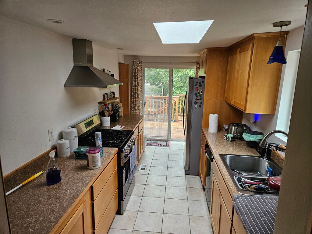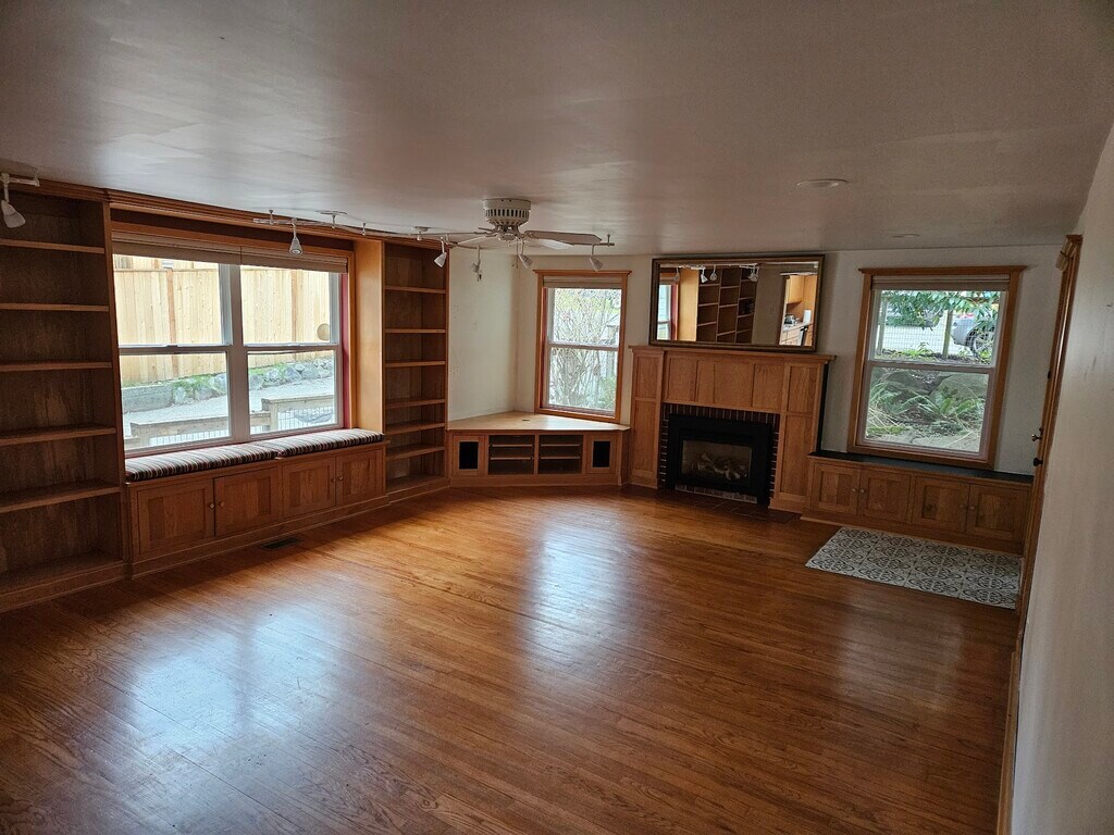 Property Id: 2431710 Interior: Entire upper floor of a two-story shared home (one tenant on the lower floor). Available is 950 sq ft with 2 bedrooms, full bath, dining/living room, and shared kitchen. Natural gas forced-air heat, gas range, gas dryer, and gas fireplace insert. Cozy living space with wrap-around floor-to-ceiling bookcases and hardwood floors. Bedrooms are carpeted; bath and kitchen have tile floors. Downstairs tenant occupies a separate 350 sq ft unit with private entrance, bedroom, bath, office, and shared laundry. They have rented here for 15 years and are reliable, respectful, quiet, and clean. Exterior: Two off-street parking spaces, covered front porch, back deck, and large tree-filled yard. Yard is semi-private but shared with the landlords next door and friendly neighbors behind the house. Kids (ages 2-18) play respectfully between yards; one yard has a full-size pickleball court. Pets negotiable with approval, deposit, and fee. Tenants handle basic yard care; no-yard-care option available for $150/month. Neighborhood: 5-min bike to Burke-Gilman Trail, 5-min walk to Lake City Way & Dick's Drive-In. Transit to University of Washington, Northgate Station, and Roosevelt Station, plus upcoming 130th & I-5 light rail. Great local restaurants, groceries, cafés, bakeries, and bars. Schools: John Rogers, JAMS, Nathan Hale. Rental details: $55 screening fee; 3:1 income ratio; 680+ credit score; 2 yrs positive rental history and references. Move-in: first month’s rent + $1000 deposit. Pets with approval ($200 deposit + $25/month per pet). Tenant pays utilities and basic yard care. Available now. Please reply with: number of adults/children, move-in date, pets (type/breed), and a short intro about work/daily schedule. Before requesting a tour, review rental criteria to ensure the home is a good fit