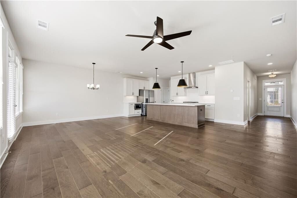 Experience refined luxury living in this NORTHEAST-facing, Toll Brothers–built, three-story townhome, thoughtfully designed to offer both sophistication and comfort. Featuring 4 bedrooms, 3.5 bathrooms, and a 2-car garage, this beautifully upgraded residence showcases exceptional craftsmanship and high-end finishes throughout, all in a highly sought-after location. A dramatic grand foyer sets the tone as you enter, leading into an expansive great room and elegant dining area that flow seamlessly to a covered rear patio—creating the perfect setting for upscale entertaining and everyday enjoyment. The chef’s gourmet kitchen is a true centerpiece, appointed with quartz countertops, high-end appliances, a striking oversized island, and abundant custom cabinetry, blending style with functionality. The primary suite offers a serene private retreat, complete with a spa-inspired bathroom featuring dual vanities, a soaking tub, a premium walk-in shower, and a spacious walk-in closet. The third-floor loft, finished with hardwood flooring, provides exceptional flexibility—ideal for a media room, private lounge, or executive home office—while an additional bedroom with a walk-in closet ensures comfort and privacy for guests. Every detail reflects quality and care, from hardwood floors and elegant lighting to upgraded kitchen and bath fixtures, centralized laundry, ample storage, and meticulous finishes throughout. Residents enjoy resort-style community amenities, including a clubhouse, swimming pool, and professionally maintained grounds. Lawn care and termite services are included through the HOA, offering truly low-maintenance living. Ideally located just minutes from GA-400 and Highway 20, this home provides walkable access to shopping, dining, and everyday conveniences, perfectly balancing luxury, lifestyle, and location. This is elevated townhome living at its finest—where timeless design meets modern convenience.
