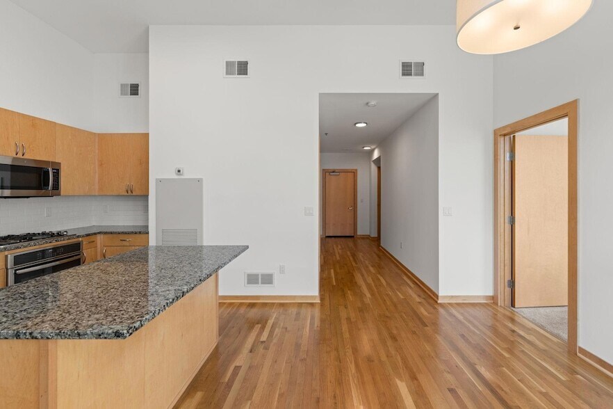 Legacy 2BR with great finishes, 2 parking stalls and most utilities included with rent now available steps from Gold Medal Park! In the kitchen you ll find granite counter tops, gas oven, stainless steel appliances, tiled backsplash and island with space for bar stools. Unit features hardwood in the main area, high ceilings, towering windows, and large balcony with natural gas grill. Legacy Lofts has unmatched amenities and services: Community room with banquet kitchen; community patio with grilling stations, fire pits & lawns; outdoor pool and jacuzzi; cardio center with studio; weight room; playground; game room with golf simulator; 24/7 front desk staff; guest parking garage; and more! Included with rent: 2 indoor heated parking stalls, 1 storage locker, water/sewer/trash, gas, heat, A/C, basic cable & internet. Tenant responsible for electricity. Application fee: $78 per adult occupant, Admin Fee: $150, HOA Moving fee: $700, HOA occupancy fee: $175; Security Deposit is One Month's rent.