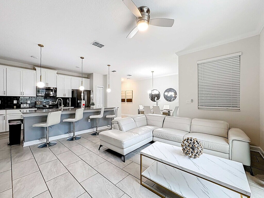 Experience the perfect Orlando getaway and feel at home in this stunning 4-bedroom, 3-bathroom townhome located inside the exclusive ChampionsGate Resort. The living area is a welcoming space, perfect for gathering with loved ones and features comfortable seating and a large flat-screen TV. The fully equipped kitchen boasts stainless steel appliances, granite countertops, and all the essentials for preparing delicious meals. Adjacent to the kitchen is a dining area, ideal for enjoying family dinners. Each of the four bedrooms is designed to provide a restful retreat. The master bedroom features a king-size bed and an en-suite bathroom. The other three bedrooms offer king-size and double beds, ensuring plenty of space for everyone. All bathrooms are fully equipped with modern amenities. Step outside to your private oasis, where you'll find a sparkling pool and a patio area, perfect for sunbathing or enjoying al fresco dining. ChampionsGate Resort offers access to fantastic amenities, including a resort-style pool and a fitness center. Pool heating, a pack and play, and a high chair are available for an extra cost. A car is recommended for maximum convenience, but Uber, Lyft, Amazon deliveries, and meal-delivery services are also widely available. Free parking is available on the premises. ChampionsGate is one of the most sought-after resort communities in the area, peaceful, upscale, and centrally located. Surrounded by restaurants, grocery stores, golf courses, and retail areas, it offers a premium experience for travelers visiting the Orlando parks and attractions. The home is just minutes from I-4, making it extremely easy to reach Disney, Universal, shopping outlets, and airport routes. Attractions include See World (18 miles), Universal (22 miles), Disney World Magic Kingdom (14 miles), Disney Hollywood Studios (14 miles), Disney Animal Kingdom (13 miles), and Disney Epcot Center (14 miles). Outlets include Ross Dress for Less (8 miles) and Sephora inside JCPenney (7 miles). Supermarkets include Publix (1.5 miles) and Target (8 miles). Local restaurants include McDonald's (4 miles), Dunkin' (3.5 miles), Wawa (8 miles), Domino's Pizza (4 miles), and Starbucks (6.5 miles). The Champions Gate Golf Course is 1 mile away. Gas stations include Eleven (4.04 miles) and Wawa (2.79 miles). Check-in is at 3:00 PM and check-out is at 10:00 AM. Early check-in or late check-out may be available upon request, subject to availability. Pets are not allowed. Be mindful of noise levels, especially during evening hours, to respect our neighbors. The private pool is for your exclusive use, and we kindly ask that you supervise children at all times. [SI]