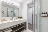 Discover comfort and convenience in this stylish, modern studio apartment on the first floor with convenient access. Feel at home in this cozy city retreat. This apartment features a fully equipped kitchen with new appliances, an in-unit washer/dryer, a rooftop patio, a Smart TV, and Wi-Fi. The fully stocked kitchen includes a coffee machine, olive oil, pots, pans, and more. Bathroom essentials such as shampoo, body wash, a hairdryer, and conditioner are provided. Enjoy the use of brand new appliances, an iron and ironing board, air conditioning, bed linens, extra pillows, blankets, bath towels, coffee and tea, a coffee maker, a kettle, sugar, laundry detergent, cleaning supplies, smoke alarms, and carbon monoxide detectors. This handicap-accessible unit has a step-free shower and grab bars. Free private parking is available. Centrally located near University Circle, Cleveland Clinic, Cleveland Museum of Natural History, the Cleveland Museum of Art, and Little Italy's charming shops and restaurants, this apartment offers easy access to Downtown Cleveland, Rocket Mortgage Field House, Progressive Field, and Cleveland Browns Stadium. It is just a short bike, drive, or public transit ride away. The apartment is 8 minutes from University Circle, 8 minutes from Cleveland Clinic, 10 minutes from Little Italy, 12 minutes from Rocket Mortgage FieldHouse, and 12 minutes from Progressive Field. Smoking indoors will result in a $500 fine. Evidence of unregistered pets will result in a $500 fine. There is a $1000 surcharge charged to groups that are deceitful about the use of the unit. Guests partying will be asked to vacate the property immediately without refund. A surcharge of $350 per undeclared guest per night will be applied for each unapproved guest. Any cameras removed or disabled will be considered a violation of the booking and a fine of $500 is applicable. A noise-aware sensor is installed in the unit to monitor decibel levels. Check-out times are firm unless scheduled and confirmed 24 hours in advance and only if it does not disturb upcoming guest reservations. A $50/hour penalty is applied if guests fail to check out by 11am. Lost keys and fobs are subject to a replacement fee of $100 for keys and $150 for fobs. Includes a dedicated workspace. [SI]