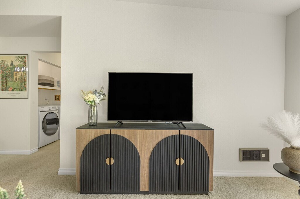 Charming 2-bedroom home in the heart of Bellevue, just a short walk to shops and dining, and only 15 minutes to Seattle. This home blends vintage charm with modern comfort and is located on the upper level, featuring 2 bedrooms, 2 bathrooms, and 1,092 sqft. A few steps are required to access the entrance, providing a private and peaceful retreat. The home offers a spacious layout with cozy living areas, ideal for families, friends, or multi-generational stays. Enjoy the community pool and hot tub for ultimate relaxation. The master bedroom is equipped with a portable A/C for summer comfort, and the smart TV is perfect for streaming. The kitchen is fully stocked with a full range of appliances, cookware, silverware, servingware, spices, coffee, and tea. All beds feature high-quality mattresses, linens, and a comfortable duvet. An onsite washer and dryer are available for your laundry needs, and parking is convenient with a reserved spot and an additional spot on a first-come, first-serve basis. The regular nightly rate covers 4 guests, with additional guest fees of $25 per person per night, up to a maximum of 6 guests. Well-trained pets are welcome with a fee of $50 per night. Parking includes a reserved spot and an additional spot on a first-come, first-serve basis. Downtown Bellevue is a vibrant hub, offering high-end shopping at Bellevue Square, diverse dining options, and cultural experiences like the Bellevue Arts Museum. The home is within walking distance to Bellevue Square and renowned parks such as the Bellevue Botanical Garden. It's an ideal destination for travelers seeking both relaxation and adventure. This home is not handicap friendly, as guests must be comfortable with stairs leading to the entrance. The living area and guest bedroom do not have A/C, but it typically remains comfortable. Guest access is provided via a smart lock. The property enforces quiet hours between 10pm and 8am, and there is a $500 fine for unauthorized pets, parties, smoking, or vaping on the property. [SI]