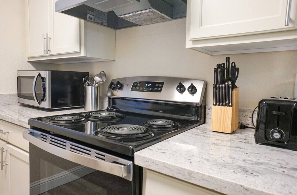 Feel at home in this charming one-bedroom apartment located in a quiet and friendly community with a private entrance. The unit includes a full living room area, kitchen, bathroom, and in-unit laundry area. Enjoy access to a shared seasonal pool and gym area, making it an ideal retreat for relaxation and fitness. The apartment is fully furnished with top-notch amenities, toiletries, and complementary goods to ensure an unforgettable stay. The living room provides a cozy space to unwind, while the kitchen is equipped for all your culinary needs. Guests have access to a shared seasonal pool and gym area, enhancing the living experience with additional leisure and fitness options. Situated in a peaceful neighborhood, this apartment offers a serene escape while still being conveniently accessible to local attractions and amenities. The property gate closes after 7pm, and the gate code will be provided in the check-in information. Be sure to remember this code to avoid being locked out after 7pm. The property does not have an elevator, and the trash dumpster is located in the parking lot. Mail cannot be received at this location. Smoking of any kind is prohibited, and violations will result in a $500 fee. Quiet hours are from 10 p.m. to 8 a.m., and parties or large gatherings are not allowed. Only certified service animals are permitted, and unauthorized pets will incur a $500 fee. Check-in is at 4:00pm and checkout is at 10:00am, with fees for early or late check-ins and checkouts. [SI]