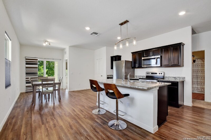 Property Id: 1485036 Welcome to the Blue Skies/Meridian Community. This like-new house built in 2020, crafted by Starlight Builders. With over 1400 square feet of well-designed space, this one-story gem offers a perfect blend of style and functionality. As you step inside, the open floor plan invites you into a world of modern living. The heart of this home is the designer kitchen, showcasing shaker-style cabinets adorned with crown molding, stunning granite countertops, high-quality stainless steel kitchen appliances, including an electric range, microwave, and energy star dishwasher. Prepare to be captivated by the impressive interiors boasting 9' ceilings. The primary bedroom treats you to a spacious retreat with a generous walk-in closet to accommodate your wardrobe. Outside, the back patio beckons you to unwind and savor moments of relaxation. The enclosed fence ensures privacy and safety for your loved ones and pets, as well as a shed for storage, boxed garden, and backs to green belt.