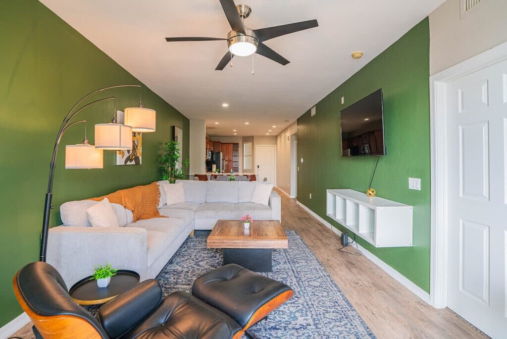 The advertised rate of $1,998/month is the lowest available price, based on a 1 month(s) stay with a move-in date of June 8, 2026. Rates vary depending on the duration of stay, season, and other parameters. For exact pricing and additional pricing components, please visit our website and enter your desired move-in and move-out dates. The rate is applicable when billed upfront; it can be higher if billed in multiple payments. Feel at home in this modern, elegant 2-bedroom apartment, the perfect base for exploring the city's best attractions. Located near a popular brewery and Tempe’s favorite local restaurants, it offers a comfortable stay where you can unwind in style. The living space features an innovative open-concept design that blends the living and dining areas with the fully equipped kitchen. The living room includes a sofa bed, chair, 4K 58" HDR smart TV, and coffee table. The kitchen features a microwave, stove, oven, refrigerator/freezer, dishwasher, toaster, coffee maker with coffee essentials, electric kettle, sink with hot and cold water, glasses, silverware, pots, pans, and a dining table with chairs. The bedroom features a queen-size bed with pillows, linens, and sheets, an office desk and chair, and reading lamps. The private full bathroom is stocked with essential toiletries, including a bath with a shower, wash basin, mirror, toilet, towels, hand towels, and washcloths. Parking is available on the premises, and instructions will be given at check-in. Pets are allowed depending on size or if they are service animals. If you are bringing a pet, please let us know beforehand. An additional cleaning fee is required per pet: 1-7 nights = $20 per pet per night, 8-29 nights = $200 flat rate, and 30 nights or more = $300 flat rate. There is a 2 pet maximum and only cats/dogs are allowed. This apartment is near a popular brewery and Tempe’s favorite local restaurants. Local bookings are not accepted, and all guests must be 23 years old and above. Quiet hours are between 10pm and 8am every day. If there are noise complaints or any violation of this rule, it may result in cancellation of booking and removal from property without refund. There is a strict no-party policy. If there is a party of any kind the police will be called and everyone will be removed from the property with no refunds. No unauthorized guests are allowed at the unit, and there is a $100 fine per guest if discovered. Smoking is prohibited without exception on this property. If any signs of smoking are found in the unit or on the premises, a fine of $500 will be imposed. If you are found to have brought pets without prior notification, there will be a $500 fee. There are noise monitors installed in our units that measure the noise levels in decibels. If tampered with, there will be a fee. If a lockbox is provided, it must be kept locked at all times. For delayed checkout, there will be a $500 late check out fee. [SI]