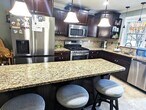 This wonderful condo is move-in ready. Imagine gathering with loved ones in the living room, where a fireplace creates a warm and inviting ambiance, further enhanced by the elegant crown molding. The kitchen is a true delight, featuring a stylish backsplash, a convenient kitchen bar, beautiful stone countertops, shaker cabinets, and crown molding that adds a touch of sophistication. The primary bedroom serves as a private retreat, complete with an master bathroom and walk-in closet. The home offers two full bathrooms and one half bathroom, providing convenience and comfort for everyday living. Plenty of closets and storage. Outdoor sitting areas on the porch and the patio. Integral garage plus two additional assigned off street parking spots and community guest parking as well.