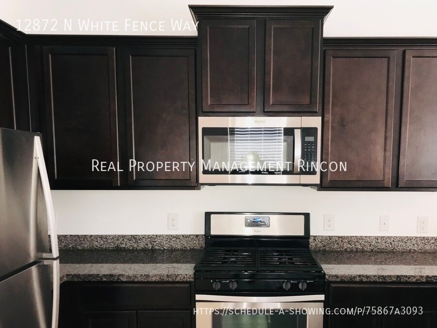 Beautiful, spacious, 3bd/2ba split floor plan. Ceiling fans throughout. Open living area with dining room. Den off the front entry way. Huge linen closet in hallway. Kitchen sink has LED lights. Matching stainless steel appliances, granite counter tops. 2nd bedroom has a walk in closet.master bath has a deep soaking tub, walk in shower and huge walk in closet. Low maintenance front and backyard. Backyard covered porch area with pavers. Large side yard with double gated fence for vehicle access. Enjoy the mountain views!! 2 car garage, AC. Pets are subject to landlord approval, pet fee and pet rent.Don't hesitate this won't last long. All Real Property Management - Rincon residents are enrolled in the Resident Benefits Package (RBP) for $59.95/month which includes liability insurance, credit building to help boost the residents credit score with timely rent payments, up to $1M Identity Theft Protection, HVAC air filter delivery (for applicable properties), our best-in-class resident rewards program, on-demand pest control, and much more! More details upon application. HOME Call/text or email 2 Car Garage Disposal Fence Fridge Laundry Hook Ups Patio Covered Pets Allowed Views