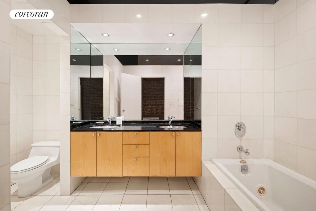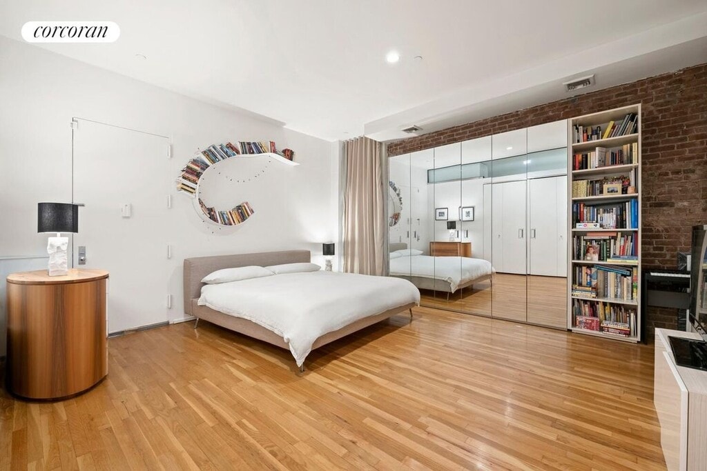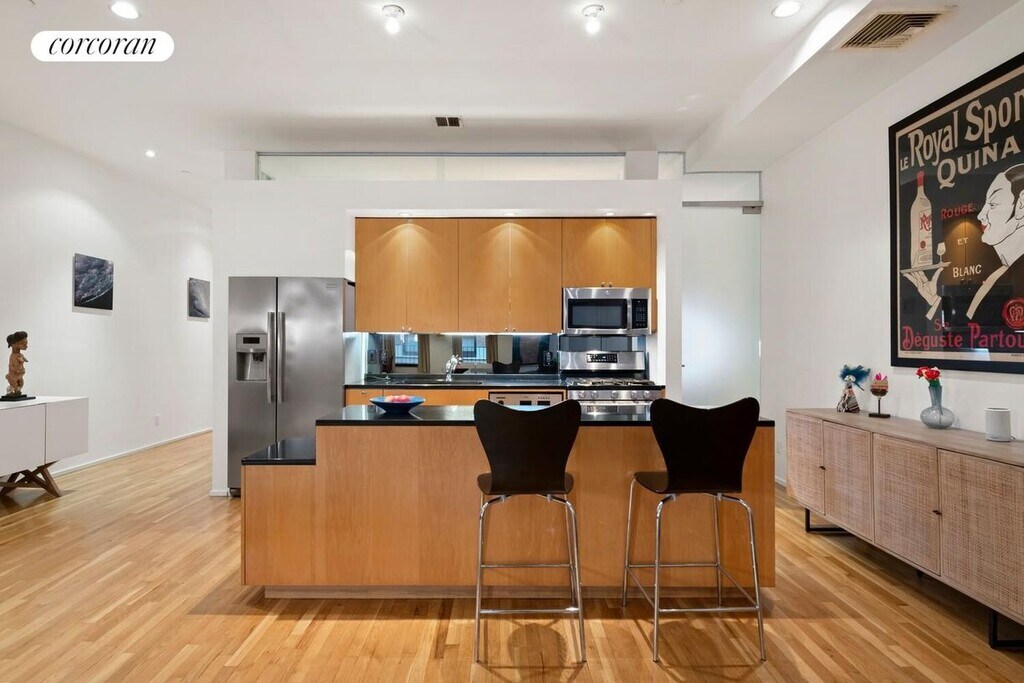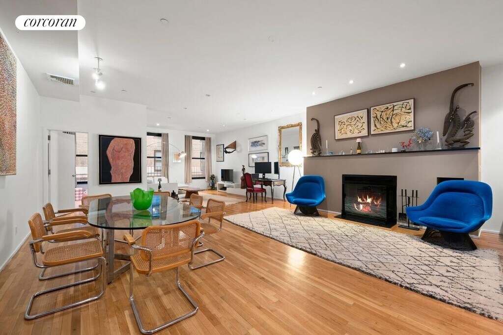 Stretch out and relax in this sprawling full-floor loft residence featuring a massive great room, generous storage in a historic Tribeca condominium.A long entry gallery welcomes you into this expansive 2,350-square-foot home, where tall ceilings with recessed lighting soar above wide art walls and gleaming hardwood floors. Ahead, the 21.5-foot-wide great room invites you to rest and entertain alongside a wood-burning fireplace and oversized north-facing windows. The open kitchen boasts sleek wood cabinetry, a center island/breakfast bar, and stainless steel appliances, including a gas range, side-by-side refrigerator, dishwasher and built-in microwave.Interior bedrooms feature frosted glass doors and clerestory windows that allow light to roam throughout. Sleep soundly in an expansive primary suite with exposed brick walls, roomy closets and an en suite bathroom. An interior secondary bedroom offers a generous footprint for beds, desks and play areas, while a full guest bathroom and a windowed bedroom off the living room complete the layout. An in-unit washer-dryer and central HVAC add comfort and convenience to this huge, move-in ready Tribeca loft.Constructed in 1860, 129 Duane Street is a classic Italian store-and-loft building built for Felix Astoin, a successful merchant and prominent member of the city's French community. Residents of the seven-unit building enjoy video intercom entry, and keyed elevator access.This unbeatable Tribeca location is surrounded by the city's best shopping, dining and nightlife, including The Odeon, Frenchette, Locanda Verde, Whole Foods, Target, Brookfield Place and Westfield World Trade. SoHo, FiDi and Hudson Square are within easy reach, and you'll never lack outdoor space or recreation thanks to adjacent Duane Park, Washington Market Park and massive Hudson River Park. Access to transportation is effortless with A/C/E, 1/2/3, R/W and PATH trains, excellent bus service, CitiBikes and West Street all nearby.Upfront costs include 1st month rent, 1 month security, and condo application fees.