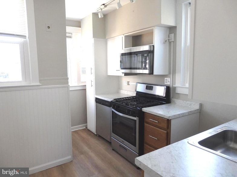 This updated home is located in a great neighborhood within walking distance of Manoa Elementary School and just blocks from the Manoa Shopping Center. It offers easy access to many township parks, public transportation, the Blue Route (476), the Turnpike, Center City, and the airport. The straight-through floor plan features an open front porch, a living room, and a dining room with ample natural light. The updated eat-in kitchen includes plenty of counter space, ample cabinets, and stainless steel appliances (refrigerator, gas stove, microwave, and dishwasher), with an exit to the fenced rear yard. The second floor includes a primary bedroom with closet access to a floored attic for storage, a hall bath, and two additional bedrooms. The full basement provides laundry hook-ups, utilities, and extra storage. The home features a gas hot water heating system with newer central air conditioning. Additional improvements include refinished hardwood flooring throughout, a low-maintenance exterior with double-hung replacement windows and siding, and a driveway with off-street parking for one car. First, last and one month security. 2,400 plus 2,400 plus 2,400 = $7,200 at signing of the lease. The tenant is responsible for lawn care, snow removal, and utilities - PECO, AQUA & Cable / Internet .