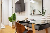 This elegantly furnished 2-bedroom apartment offers a blend of comfort and style, featuring a queen-size bed in the bedrooms and a full-size sofa in the living room for ultimate relaxation. An air mattress is also on hand for extra sleeping options. Located in the Upper East Side, this apartment is perfect for those looking to feel at home in one of New York City's most desirable neighborhoods. The expansive kitchen comes fully stocked with all essential appliances and utensils, making it easy to prepare delectable meals during your stay. The dining space is roomy, offering ample seating for you and your guests. Hardwood flooring graces the entire apartment, lending an air of sophistication and warmth. For your entertainment and connectivity needs, a flat-screen TV and Wi-Fi are readily available. Complete with provided linens, such as sheets and towels, this apartment has everything you need for a delightful stay. The Upper East Side is known for its upscale residential buildings, high-end shopping, and iconic cultural institutions. The area is home to renowned museums such as the Metropolitan Museum of Art, the Solomon R. Guggenheim Museum, and the Neue Galerie New York. Shoppers will delight in the designer boutiques and luxury brands lining Madison Avenue and Fifth Avenue. Foodies will enjoy the diverse culinary offerings, with a variety of restaurants and cafes serving everything from classic New York bagels to Michelin-starred cuisine. The neighborhood also boasts numerous parks and green spaces, including Central Park, which is just a short walk away from the apartment. New York City's heating season is until the end of May. Beginning around mid-April, window air conditioning will be installed in the apartment. A request for earlier installation can be made. [SI]