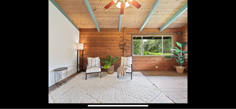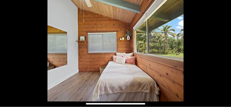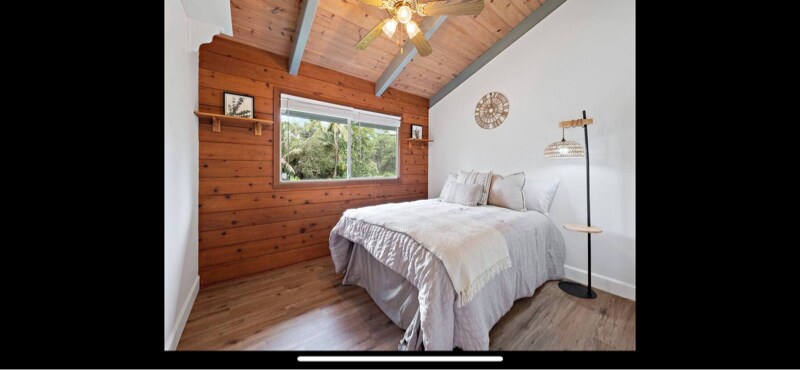 Property Id: 2172869 Three bed two bath, beautiful hardwood tongue and groove cabin feel with vaulted ceilings, centrally located with privacy and fruit trees on an acre im Leilani subdivision ?