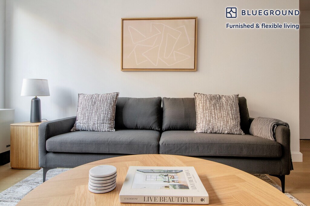 Fotos Próximamente Estas fotos de muestra están pensadas para darte una idea del estilo de diseño de Blueground. La disposición y el mobiliario están sujetos a cambios. Este apartamento estará listo para la fecha indicada. ¡Sea el primero en alquilar! Ofrecemos precios personalizados por cualquier duración. Las tarifas pueden variar según las fechas exactas de mudanza. La tarifa para esta casa comienza en $4,920* / mes. Visita nuestro sitio web e ingresa tus fechas de estadía para ver los precios actualizados para tu reserva específica. *El precio cotizado es: (1) según la mudanza en el primer día en que el apartamento está disponible, (2) aplica solo si se factura por adelantado, puede ser más alto si se factura en múltiples pagos, (3) exclusivo de cualquier impuesto o servicio público. ¡Se admiten agentes inmobiliarios! Pagamos un 5% de comisión sobre el alquiler. Descubra lo mejor del centro de la ciudad con este apartamento Chelsea de un dormitorio. Será fácil simplemente presentarse y comenzar a vivir en este amplio apartamento amueblado en Blueground con su cocina totalmente equipada, una sala de estar sofisticada y nuestro servicio de asistencia en el terreno. (ID #NYC1384) Diseñado pensando en usted Magnífico mobiliario, cocina totalmente equipada, televisor inteligente y altavoz inalámbrico premium son solo algunas de las comodidades que encontrará dentro de este apartamento de un dormitorio. Con una ubicación ideal en el centro de la ciudad, también encontrará mucho para disfrutar al aire libre. Cuando esté listo para relajarse, estará encantado de descubrir que cada dormitorio Blueground cuenta con colchones de calidad superior, sábanas de lujo y toallas acogedoras. Nosotros nos encargamos de todo para que usted pueda simplemente presentarse y comenzar a vivir. Este apartamento también ofrece lavandería en el apartamento. Alojamiento para dormir Cama Queen, servicios de 160 cm Los servicios del edificio exclusivos de este dormitorio incluyen: - Portero - Secador - Ascensor - Gimnasio - Lavadora - Salón - Se permiten mascotas Llegada y asistencia continua ¡Todo el apartamento es suyo! Un miembro del equipo de Blueground le dará la bienvenida personalmente o le dará instrucciones para el auto check-in. Durante su estancia, tendrá acceso a nuestro equipo de experiencia del cliente a través de la aplicación Blueground. Puedes programar limpiezas adicionales, enviar solicitudes de mantenimiento y ver las recomendaciones de nuestro vecindario con solo unos pocos toques. Compartiremos todos los detalles tras la confirmación de su estancia. Con una ubicación ideal Este apartamento amueblado está ubicado en Chelsea, uno de los barrios más modernos de la ciudad. Considerado un centro artístico y creativo, hay más de 200 galerías por descubrir. Desde arte clásico hasta arte experimental, hay algo para cada gusto. Da un paseo por el parque High Line para tener una perspectiva única y un soplo de aire fresco. Lo que solía ser un ferrocarril, ahora ofrece vistas impresionantes de la arquitectura de Manhattan. Esta zona también es conocida por sus diversas opciones gastronómicas elegantes y su moderna vida nocturna. Desde Chelsea, el Aeropuerto JFK se encuentra a sólo 30 minutos en automóvil. Otras cosas a tener en cuenta Los servicios del edificio pueden tener un costo adicional. Este apartamento de Blueground tiene opciones de arrendamiento flexibles, lo que te permite reservarlo por un mes, un año o más. Las mascotas son bienvenidas, aunque se aplican límites de peso y restricciones de raza y pueden incurrir en cargos. CYOF para corredores.