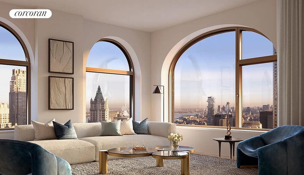 Professional photos coming soon.Residence 36A is a corner one bedroom home with approximately 10 foot ceilings and oversized arched windows with elegant bronze detailing framing New York City skyline views. Interior finishes include wide-plank white oak flooring and oil rubbed bronze fixtures custom designed by Sir David Adjaye. The residence boasts an open kitchen with custom Pedini Italian textured blackened oak cabinetry, Salvatori Pietra Cardosa marble countertops and backsplash hand-selected from the Apuan Alps in Tuscany with a Salvatori Nero Marquina cantilever detail providing additional counter seating, and state-of-the-art appliances by Gaggenau, Bosch, and Thermador. The luxuriously appointed bathroom is designed with textured Italian Bianco Carrara marble, a custom Pedini Italian millwork vanity, an expansive shower, and radiant heated floors.130 William boasts an expansive collection of lifestyle and wellness amenities, including a full-scale health and wellness club with an infinity-edge spa pool, cold and hot plunge pools, dry sauna and massage rooms, as well as a state-of-the-art fitness center with terrace, yoga studio, and basketball court. Residents will also enjoy a multitude of entertainment facilities including indoor and outdoor lounges complete with a chef's catering kitchen, club room, golf simulator, a private IMAX theatre, a kid's activity center, and a private rooftop observation deck located at the top of the building, nearly 800 feet in the air. Additional conveniences include a 24-hour attended lobby, concierge service to manage all your personal needs, from reservations to theater tickets and beyond, and a pet spa, AND bicycle storage.