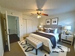 View 360 virtual tour: Move In Special! Get a $100 gift card on a 1-year lease. Cozy apartment in a 4plex, nestled in the corner of the building with its own fenced-in yard, full kitchen and kitchenette area, two bedrooms, and one bath that give over 700 sq feet of comfort and privacy. Other highlights of this unit include central AC, built-in microwave, ample storage space, and rich cherrywood plank flooring in the living room. Full tile bathtub in the bathroom, which also has built-in shelving, ceiling fans in all rooms, and dedicated parking on this corner lot are also a big plus! Disclaimer: The furnishings or enhancements shown are AI-generated and intended for inspiration only. They may not reflect the actual scale, condition, or current features of the property.