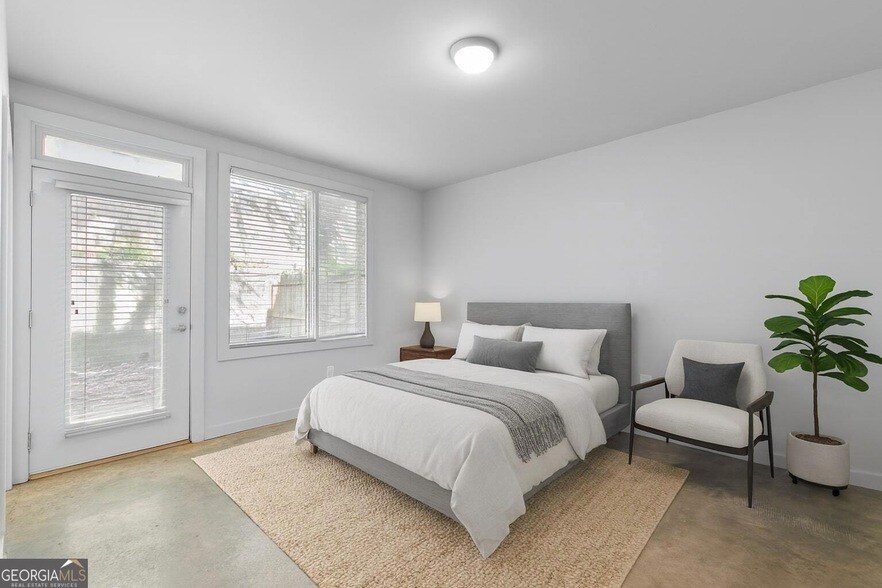 Move-in ready 2 bed, 2.5 bath townhome located in Blandtown, one of West Midtown Atlanta's most desirable rental communities. This bright, modern home features a true roommate floor plan with bedrooms on separate levels, offering maximum privacy. The open layout includes soaring two-story floor-to-ceiling windows overlooking the pool, oak hardwood floors in the main living area, and a kitchen with granite counters and pantry. The entry level offers polished concrete floors, a spacious secondary bedroom with full bath, and direct access to a private fenced backyard perfect for pets or gardening. The large primary suite is located on the third floor and includes an ensuite bath, walk-in closet, and full-size washer and dryer. Additional highlights include a one-car garage and abundant natural light throughout. The gated M West Townhome community provides resort-style amenities including a swimming pool, clubhouse, fitness center, gated dog park, and an 11-acre nature preserve with a walking trail to Star Provisions and Bacchanalia. Conveniently located near The Works, Topgolf, Chattahoochee Food Works, breweries, and Westside Market. The community will soon connect to the Atlanta BeltLine Westside Trail, providing access to Waterworks Park and Westside Reservoir Park.