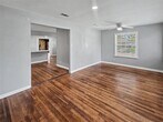 Lovely 2 beds/2 baths home with a huge additional room featuring a fireplace and plank wood flooring that can be used as Den, Media room, Guest room or sleeping area. Large corner lot in a quiet neighborhood. Generous open kitchen featuring a breakfast bar. Lovely hardwood flooring. Washer and dryer connections in the garage. Huge driveway, fenced in backyard, and 2 car garage.
