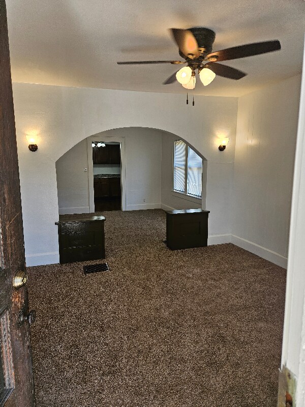 Property Id: 2167935 Just completed renovations inside! Cute two-bedroom, one-bath house with fresh paint throughout and all new carpet. Living room and both bedrooms have ceiling fans. Dining room and hallway have new updated light fixtures. Kitchen has a brand-new fridge and microwave, the bathroom has a new tub, vanity, sink, and medicine cabinet. Very spacious with a full basement for storage. The main floor has a laundry room. There is also a garage with a newer garage door (no opener). Nice neighborhood with a fenced in backyard. Three season front porch with ceiling fan. Nice quiet street with friendly neighbors. No central air but we will provide new a/c units going into next summer. Rent: $1,030/month Includes: fridge, stove, microwave and window a/c units Tenants put utilities in their name