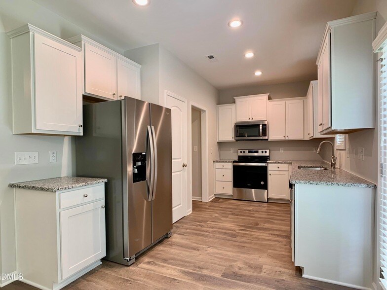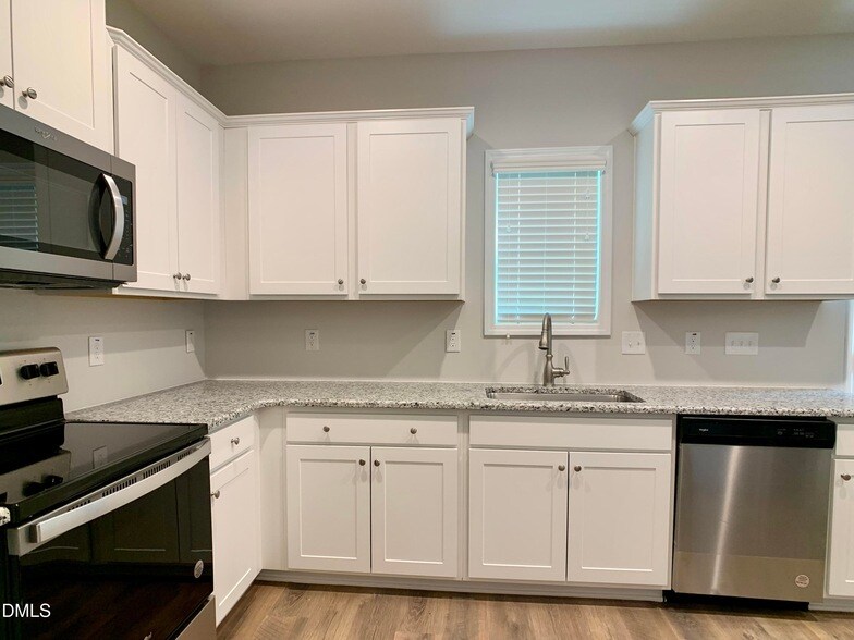 3 BR/2.5 bath in Academy Pointe, Clayton. Olympic floor plan that features granite counters, stainless steel appliances, home office & large living room with cozy fireplace. The spacious primary suite is a true retreatwith large walk-in closet, double sink vanity and 5ft shower! Enjoy your maintenance free yard plus pools, gyms & golf.