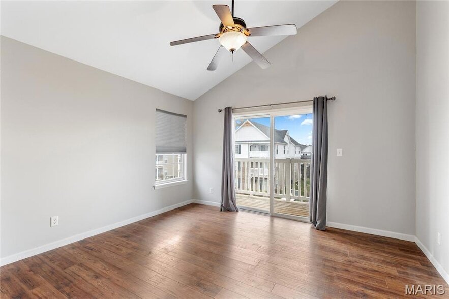 Conveniently located condo just seconds from 364 and Mid Rivers Mall Drive. Walking in you will notice the booming vaulted cielings.This home features 2 spacious bedrooms and 2 full baths. You will enjoy the upgraded flooring throughout. Kitchen is spacious breakfast bar and ample counterspace. Breakfast room/Dining area off kitchen. Primary suite offers spacious closet and double bowl vanity. Private Balcony/deck also has an extra storage space. Ample parking and an assigned covered carport as well. Reasonable HOA fee covers all sewer water trash snow removal and exterior maintenance.