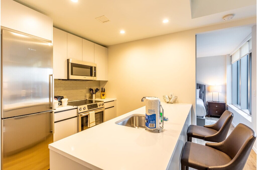 The advertised rate of $7,202/month is the lowest available price, based on a 1 month(s) stay with a move-in date of April 6, 2026. Rates vary depending on the duration of stay, season, and other parameters. For exact pricing and additional pricing components, please visit our website and enter your desired move-in and move-out dates. The rate is applicable when billed upfront; it can be higher if billed in multiple payments. Experience luxury living in this charming and bright 634 sq. ft. 1-bedroom apartment at The Alyx at EchelonSeaport, a premier landmark residence in the vibrant Seaport neighborhood. Feel at home with a walk-in closet, breakfast bar, and frosted sliding glass door to separate living and sleeping spaces. Indulge in resort-style amenities, including an inviting outdoor pool, cozy fire pits, a state-of-the-art fitness center, a game of pool, and a complimentary java bar in the lobby. Parking is not included, but garage parking may be arranged for a fee. Pets are welcome with a fee. Experience the vibrant lifestyle of Boston Seaport, a dynamic waterfront neighborhood brimming with culture, entertainment, and innovation. Known for its bustling dining scene, Boston Seaport offers a diverse array of gourmet eateries and trendy bars. The neighborhood is also home to cutting-edge art galleries, world-class museums, and a thriving tech hub, making it a hotspot for creativity and innovation. With its stunning waterfront views and easy access to downtown Boston, the Seaport district offers an unmatched urban living experience. Quiet hours are between 10 PM and 6 AM. ID and background verification are required for entry. Registration Number: C [SI]