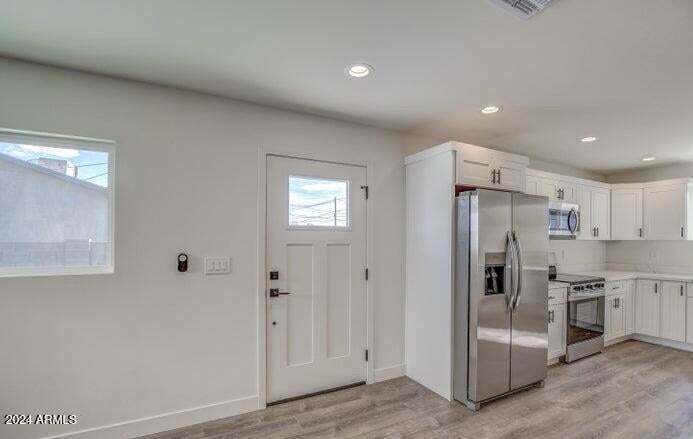 Enjoy low-maintenance, wood-like flooring throughout the entire home, creating a modern and cohesive look. The kitchen features New stainless-steel appliances, granite countertops, and crisp white cabinetry, offering both style and functionality. (master bedroom)- downstairs with a private en-suite, as well as a second primary bedroom (master bedroom) upstairs Two additional upstairs bedrooms share a full bathroom with a tub/shower combination, making this home perfect for larger households or roommate-style living. Guests will appreciate the separate downstairs powder room, conveniently located away from the bedrooms. Additional highlights include an inside washer and dryer and a private two-car garage for added convenience. Located just minutes from Downtown Phoenix, Sky Harbor Airport, and the I-17 Freeway, this home offers easy access to everything the Valley has to offer. Section 8 are considered. For additional information please call Andrea or email . Equal Housing opportunity - Fort Lowell Realty - Contact us to schedule a showing.