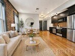 Renovated 3-bedroom, 1-bath apartment featuring an open-concept living and kitchen layout. The kitchen is equipped with stainless steel appliances, including a dishwasher. Additional features include central heating and cooling, video intercom, and hardwood flooring throughout. All three bedrooms can accommodate queen-size beds and offer closet space.The building includes shared laundry, bike storage, and access to a small courtyard.