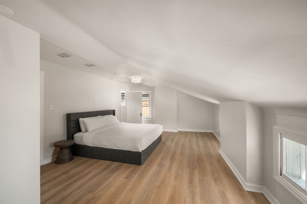 Feel at home in this bright and spacious 1-bedroom apartment, situated on a picturesque tree-lined street overlooking a lovely green park in Cincinnati's Pendleton Neighborhood. With soaring ceilings and expansive windows, this stylish apartment offers a perfect blend of tranquility and proximity to the vibrant downtown area, just steps away from the best food and entertainment Cincinnati has to offer. The apartment features a fully equipped kitchen and a well-appointed open kitchen-living-dining layout, perfect for gathering with guests. Enjoy the comfort of a massive king-size bed, high-end hotel sheets and pillowcases, and a custom tile shower. Stay entertained with a large-screen smart TV and high-speed Wi-Fi, and take advantage of the free in-unit washer/dryer and central air and heat. Parking is convenient with a parking pass provided for one vehicle in Ziegler Garage, just a 3-4 minute walk away. Additional vehicles can park in the same garage for approximately $10 per night. Located in Over the Rhine, Cincinnati's food and entertainment district, this apartment boasts a 94 walk score, making it a walker's paradise. You're within a short walk to hundreds of cafes, restaurants, boutiques, bars, and more. The apartment is a 3-minute walk to Ziegler Park and Pool, a 5-minute walk to Main Street, and close to a free streetcar stop for easy access to downtown. Nearby attractions include the Great American Ballpark, TQL Stadium, and the Cincinnati Zoo. The apartment is located on the third floor, requiring a climb of two short flights of stairs. Quiet hours are from 9:30pm to 8am, and amplified music is not allowed without advance written consent. Smoking and open flames are prohibited, with a $300 cleaning fee for violations. Parties are strictly forbidden, and unauthorized parties may result in prosecution under Ohio Revised Code and Cincinnati municipal code. Violations of house rules may lead to reservation termination without refund.