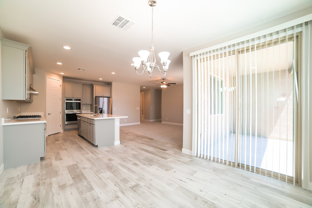 Tenga en cuenta que nuestras casas están disponibles por orden de llegada y no se reservan hasta que el arrendamiento sea firmado por todos los solicitantes y se cobren los depósitos de garantía. Solicite y obtenga la aprobación para alquilar esta casa antes del 30 de septiembre de 2023 y reciba un descuento de $500 en su primer mes completo de alquiler. ¿Quieres hacer un tour por tu cuenta? Haga clic en el botón “Mostrar en” en la lista de esta casa o llame para inscribirse en una presentación autoguiada en el momento que mejor le convenga. Esta casa cuenta con la aplicación para casa inteligente Progress Smart Home - Progress Residential, que te permite controlar la casa de forma segura desde cualquiera de tus dispositivos. Obtenga más información en Eche un vistazo a esta fantástica casa de alquiler de tres dormitorios y tres baños con tecnología inteligente para el hogar y un garaje adjunto en Peoria, Arizona. El diseño abierto de la casa comienza con un vestíbulo de entrada que lo lleva más allá de la lavandería y hacia la sala de estar, que cuenta con paredes de colores neutros y alfombras mullidas para que se sienta cómodo. Hay una isla central que también sirve como barra de desayuno en la cocina. Observe los hermosos armarios de color miel y la espaciosa despensa en esquina. Diríjase al porche trasero cubierto a través de puertas corredizas de vidrio en el comedor adyacente. Dentro de la amplia suite principal, disfrutará de un lujoso baño privado con dos lavamanos, una ducha con azulejos blancos y un vestidor con estantes. ¡No esperes a reservar tu presentación en persona!