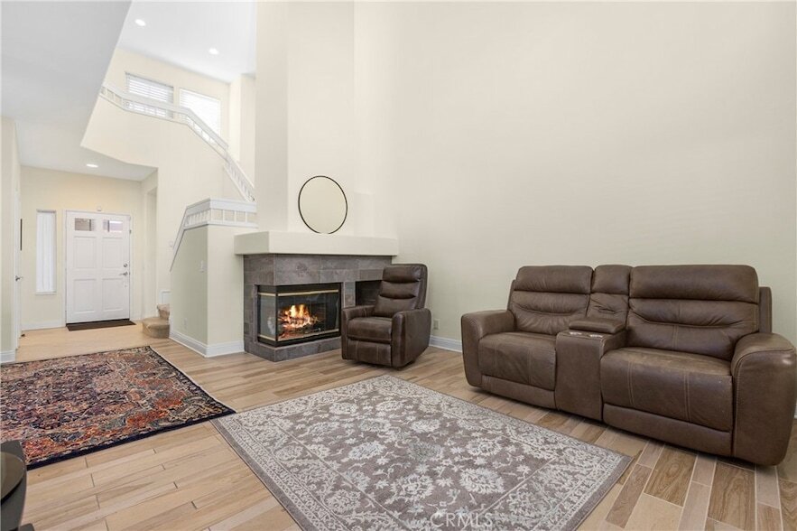 Welcome to this light-filled corner end-unit in the highly desirable Belterraza community, just steps from Tijeras Creek Golf Course. A gated, private walkway leads you to the front door, creating a welcoming sense of privacy and charm from the moment you arrive. Inside, you ll love the open, airy floor plan designed for both everyday living and entertaining. The spacious kitchen sits to the right and flows seamlessly into the dining area perfect for hosting friends or keeping an eye on the action while you cook. It features white cabinetry, granite countertops, white appliances, and a generous breakfast nook for casual meals and morning coffee. Plus, with direct garage access from the kitchen, unloading groceries is as easy as it should be. The living room is bright and inviting with soaring ceilings, abundant natural light, and a cozy fireplace that anchors the space. Step outside to a practical, low-maintenance yard ideal for weekend BBQs, relaxing with a book, or creating a simple outdoor lounge setup without spending your Saturdays doing yard work. Upstairs you ll find the primary suite along with two additional spacious bedrooms. Ceiling fans in every room add comfort year-round, and the newer dual-pane windows help improve energy efficiency and keep utility bills in check. The attached two-car garage is immaculate and offers plenty of built-in cabinetry for storage and organization. Washer, dryer, and refrigerator are included, making this home truly move-in ready. Conveniently located close to shopping, dining, freeway access, and award-winning schools, this home offers the perfect blend of comfort, location, and lifestyle in one of Rancho Santa Margarita s most sought-after communities.