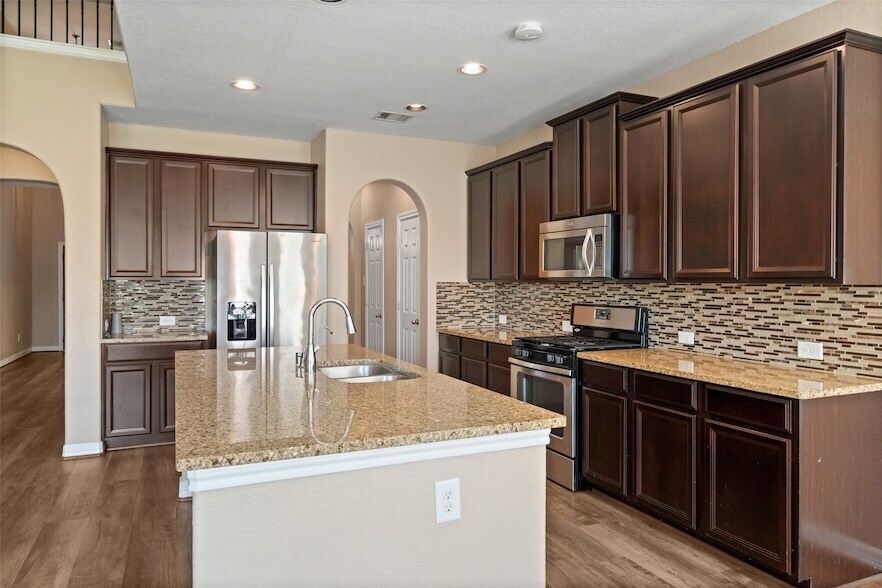 Welcome to this spacious 5-bedroom home for lease in a gated Cypress community with amenities including a pool, tennis courts, fishing lake, and playgrounds. The home is clean, well-maintained, and ready for a quick move-in. Inside, vinyl plank flooring flows through most of the first floor, including a private study and a formal dining room. The kitchen features granite counters, a glass tile backsplash, stainless steel appliances, and 42" cabinets, all centered around a large island with bar seating. Just off the kitchen, the living room offers soaring ceilings, a gas fireplace, and access to the backyard. The primary suite is located downstairs with a spacious bath including dual sinks, a soaking tub, and a walk-in shower. Upstairs, you ll find a game room along with four additional bedrooms and two full baths. Zoned to Tomball ISD, this home offers plenty of space inside and out in a great location.