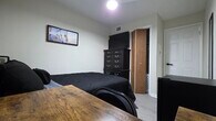 Property Id: 2437057 Spacious Private Room with Vaulted Ceilings & Integrated Power The Private Space: Enjoy the sense of extra space in this newly renovated bedroom, featuring high vaulted ceilings that make the room feel open and airy. This move-in-ready space is designed with both style and modern utility in mind. Bedside Tech: A comfortable bed featuring a modern headboard with built-in power outlets and USB ports. You can easily charge your devices right where you sleep without hunting for a wall plug. Productivity & Refreshment: Includes a dedicated workspace with a desk and chair, your own personal mini-fridge, and a Smart TV for private relaxation. Modern Design: Vibrant teal accents paired with sleek wood-style flooring and a large window create a bright, welcoming environment. Comfort & Storage: Stay cool with a modern white ceiling fan. The room also includes a dresser, a full-length mirror, and a wall-mounted clothing rack for your wardrobe. The Shared Experience (1343 Poppy Ave.): As part of the Poppy Ave. community, you’ll have access to all the high-end shared amenities: Shared Bathroom: Clean, modern bathroom facilities shared with respectful housemates. Fully Stocked Kitchen: Access to upgraded appliances, a Keurig, and all basic cookware/dinnerware. All-Inclusive Living: Your rent covers high-speed Wi-Fi, electricity, water, and trash. Cleaning Service: We include a professional cleaning service for all common areas, ensuring a consistently high standard of living.