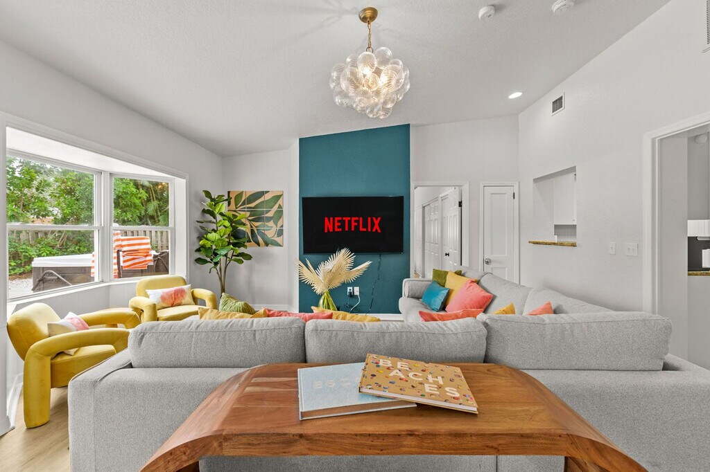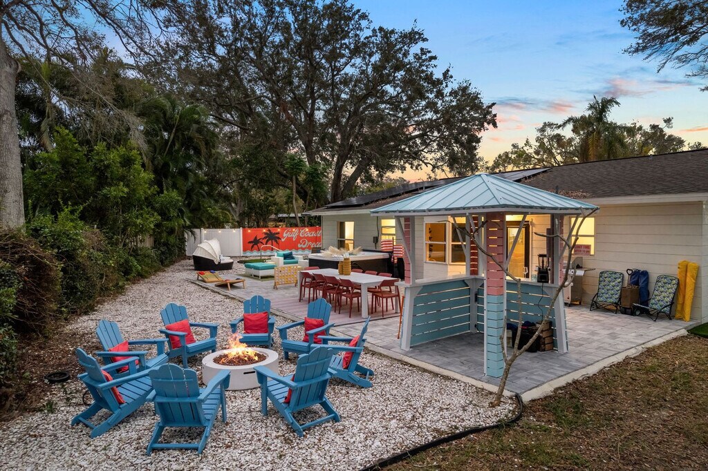 This 5-bedroom house in Seminole, FL, is packed with amenities and has everything you need for an amazing vacation. Feel at home with features like a heated private pool, sportscourt for basketball and pickleball, outdoor bar, hot tub, fire pit, outdoor patio and dining area, BBQ grill, and more. The house comfortably accommodates up to 18 guests, making it perfect for reunions, celebrations, or relaxing with loved ones. The house offers 5 spacious bedrooms and 2.5 bathrooms, ensuring comfort for all guests. Each bedroom is equipped with a smart TV, and the fully stocked kitchen boasts high-end stainless appliances, a large refrigerator, and ample cooking space. The living room features a 65" smart TV and direct outdoor access, while the spectacular resort-style backyard includes a heated private pool, sportscourt, outdoor bar, hot tub, fire pit, and ample outdoor seating. The heated private pool is available for $100 per night and can be heated to about 20-25 degrees above the ambient temperature. It is recommended to heat the pool between October and May, with a 3-day notice required before arrival. Parking is available for up to 3 cars. Explore the area with ease, whether by renting a car or using rideshare services like Uber and Lyft. Nearby attractions include Boca Ciega Millennium Park, Lake Seminole Park, Florida Botanical Gardens, and Treasure Island Fun Center. For dining, visit local favorites like Mamas Kitchen, Zom Hee Chinese Restaurant, Jimmy's Sushi, Doc Ford's Rum Bar and Grille, and Mad Beach Cantina. Check-in is at 4pm and check-out is at 10am. The primary guest must be at least 25 years old, and no pets or parties are allowed. Violations may result in immediate termination of the stay. An exterior camera is installed to monitor the cleaning team for quality and security purposes. Guests must be 21 years or older to book this property. A guest verification process is required within 48 hours of booking confirmation, and a rental agreement must be signed prior to check-in. A non-refundable $60 damage waiver is required, covering accidental damage during your stay, provided it is reported before check-out. The house includes a dedicated workspace, providing a comfortable environment for remote work. [SI]