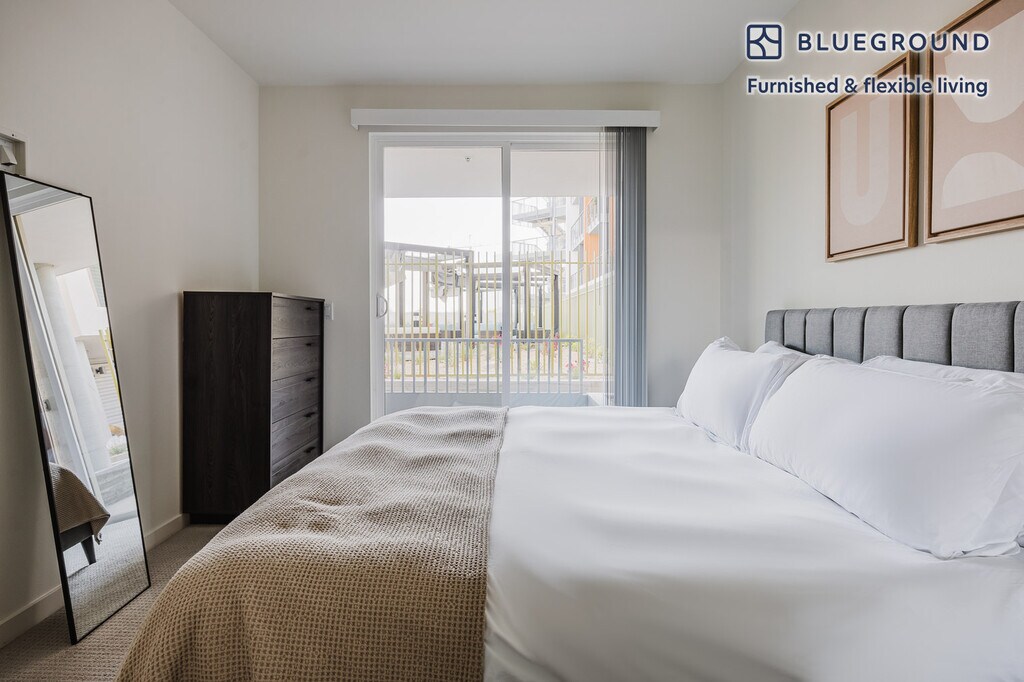 Discover the best of Los Angeles, with this two bedroom apartment in Del Rey. It’ll be easy to simply show up and start living in this furnished apartment with its fully equipped kitchen, living room, and our dedicated, on-the-ground support. (ID #LAX1307) The advertised rate of $3,990/month is the lowest available price, based on a 6 month(s) and 5 day(s) stay with a move-in date of April 6, 2026. If you’re looking for a 1-year stay, the rate is $4,100/month. Rates vary depending on the duration of stay, season, and other parameters. For exact pricing and additional pricing components, please visit our website and enter your desired move-in and move-out dates. The rate is applicable when billed upfront; it can be higher if billed in multiple payments. Brokers are welcome to reach out. Were you looking for an unfurnished lease? Try Blueground instead and upgrade from unfurnished to furnished living: - Furnished at rates comparable to unfurnished - No setup or furniture costs - save thousands - Move-in ready - save time, just bring your suitcase Designed with you in mind Thoughtfully designed with bespoke finishes, modern furnishings, and a fully equipped kitchen, you’ll enjoy that “I’m home” feeling with this Blueground apartment. Whether you’re lounging in your charming living room streaming the latest and greatest entertainment on the smart TV or premium wireless speaker, or getting some well-earned rest on the superior quality mattress with luxury linens, you’ll fall in love with everything this Del Rey apartment has to offer. This apartment also offers in-apartment laundry. Sleeping arrangements King Bed, 70.8in/180cm King Bed, 70.8in/180cm Amenities Building amenities unique to this two bedroom apartment include an on-site: - Dryer - Elevator - Swimming pool - Washing machine - Parking - Pets allowed Arrival and ongoing support The entire apartment is yours to enjoy! Throughout your stay, you’ll have access to our Client Experience team through the Blueground App. You can schedule additional cleanings, submit maintenance requests, and view our neighborhood recommendations with just a few taps. We’ll share all details upon confirmation of your stay. Other things to note Building amenities may have an extra cost. This Blueground apartment has flexible lease options, allowing you to book it for one month, a year, or more. Pets are welcome, though weight limits and breed restrictions apply and may incur fees. Parking is offered based on availability and is subject to a fee. We take great pride in ensuring every photo displayed is shot in our own units with our actual furnishings. That said, we regularly refresh our decor and furniture arrangement, which may differ from what’s pictured. [SI]