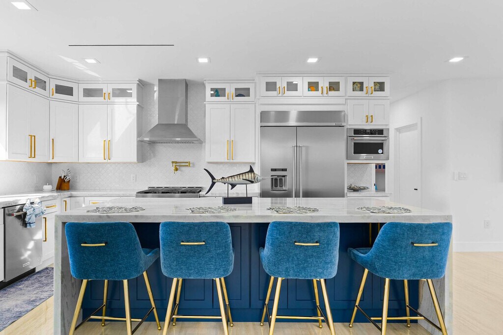 Feel at home in Ocean Muse, a luxurious 4-bedroom, 3-bath waterfront getaway in tranquil Marathon, FL. This brand-new home offers unforgettable ocean views. This home features an open-design living area, a full kitchen plus a wet bar, high-speed Wi-Fi, and an elevator to all levels. The kitchen is fully equipped with top-of-the-line appliances, including a microwave, stove, oven, toaster, blender, coffee maker, hot water kettle, refrigerator/freezer, and dishwasher, as well as plates, glasses, silverware, and pots and pans. Enjoy the private backyard with a lounge, smart TV, heated pool and jacuzzi with chiller, fire pit, Connect 4 and cornhole, BBQ grill, and outdoor dining. There is a 40-foot dock with a fish-cleaning station, ideal for boats up to approximately 35 ft/10 ft beam. Pets are welcome for $250 per stay, and parking is available for 4–5 vehicles plus a boat trailer. Pool heat can be added for $250 per week. Nestled on a waterfront street in Marathon, this home is minutes from pristine beaches, swaying palms, and warm turquoise waters. Nearby attractions include Coco Plum Beach, Florida Keys Aquarium Encounters, Dolphin Research Center, Crane Point Hammock, Turtle Hospital, and Sombrero Beach. The iconic Seven Mile Bridge is also close by, offering breathtaking views and unforgettable fishing spots. Marathon’s charming streets boast seafood restaurants, boutiques, and laid-back waterfront dining. Quiet hours are from 9 PM to 9 AM. Smoking is prohibited anywhere on the property, and any smoking evidence will result in odor removal and furniture cleaning fees. The elevator is an added bonus and is not ADA compliant. It may be out of order from time to time and is not guaranteed to work in emergency situations. [SI]