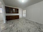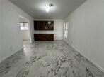 This three-bedroom home sits on an extra-large, fenced corner lot with mature trees providing plenty of shade. The four-sided brick exterior and storm shutters add extra protection during storms. Inside, the all-tile flooring complements two living areas one a living/dining combo with a built-in china buffet, and the other featuring a brick accent wall, overhead lighting, and patio access. The galley kitchen offers white cabinets, ample counter space, and black-and-white appliances, including an electric smooth-top stove/oven, vent hood, dishwasher, countertop microwave, and refrigerator, with easy access to the garage where washer and dryer hookups are located. Three oversized bedrooms and two bathrooms feature tiled showers, with the main bath boasting an extended vanity. Recent updates include HVAC, interior paint, appliances, flooring, and baths. The spacious front and back yards provide plenty of room for outdoor fun.