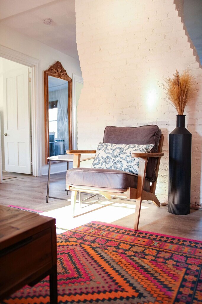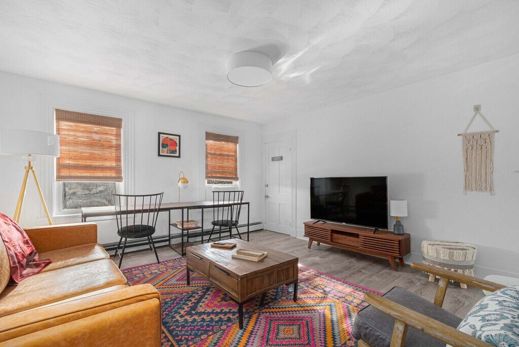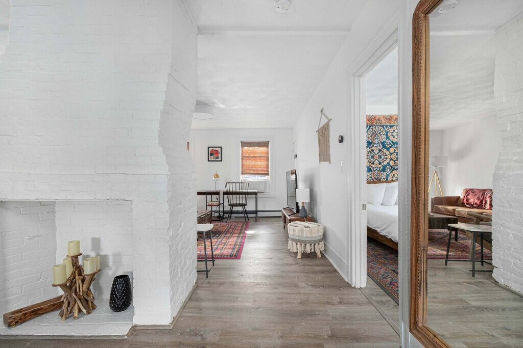 The advertised rate of $2,460/month is the lowest available price, based on a 30 day(s) stay with a move-in date of March 1, 2026. Rates vary depending on the duration of stay, season, and other parameters. For exact pricing and additional pricing components, please visit our website and enter your desired move-in and move-out dates. The rate is applicable when billed upfront; it can be higher if billed in multiple payments. Feel at home in this warm, embracing 1-bedroom retreat, located on the second floor west wing of The Return Warren in Historic Downtown Warren, Rhode Island. Inspired by protected woodland landscapes, this open-plan apartment is designed around comfort, care, and connection to nature. This apartment features a fully stocked kitchen with stainless steel appliances and a spacious island, a welcoming living area with a leather sofa set against rich jewel-toned accents and a Smart TV. The bedroom offers a queen-size bed with hotel-quality linens, while the full bathroom provides a spa-like experience. Guests have access to a beautifully designed shared spa area on the ground level, featuring a 6-person hot tub, sauna, fire pit, and outdoor shower. Parking is available for two cars in the adjacent lot. Located in a lively, vibrant part of town, you may hear the usual sounds of city life from time to time. Explore charming boutiques, local art galleries, and coffee shops in Downtown Warren, just steps away. Nearby attractions include Warren Town Beach (0.9 mi), Barrington Beach (2.3 mi), Burr’s Hill Park (0.6 mi), and Touisset Marsh Wildlife Refuge (3.5 mi). Enjoy dining at Blount's Clam Shack (0.6 mi), The Wharf (0.2 mi), Trafford Restaurant (0.3 mi), The Revival Craft Kitchen & Bar (0.4 mi), and Waterdog Kitchen + Bar (0.3 mi). This building includes four separate units, which means there may also be light noise from neighboring guests. This is a historic property, and some of the stairways are naturally narrow and steep, so please use caution when navigating them. Due to the age and character of the home, the doors may stick slightly during warmer months. No parties or events are allowed, and violations may result in immediate termination of the stay. Guests must be 21 years or older to book. Check-in is at 4:00 pm and check-out is at 10:00 am. Includes a dedicated workspace for remote work. Registration Number: RE.00521-STR [SI]