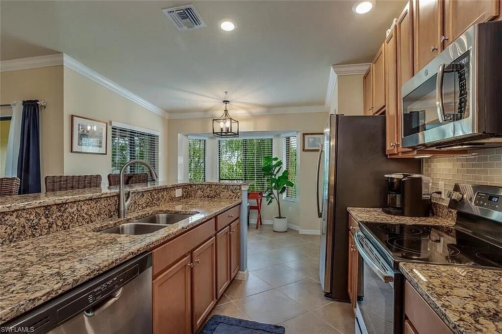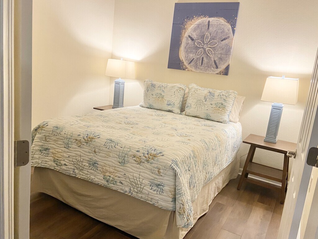 Property Id: 2434413 Beautifully decorated with inviting Florida décor, this 2BR + den, 2BA condo lives like a 3 bedroom plus office, offering flexible space for guests or working remotely. The open, spacious floor plan is ideal for everyday living and entertaining, featuring a granite kitchen with stainless steel appliances and bar seating. Enjoy true indoor-outdoor living with an oversized screened front porch and a large screened balcony overlooking lush greenery and palm trees, providing peaceful tropical views and additional living space. Includes assigned covered parking and impact windows. Gated community amenities feature a pool, clubhouse, fitness center, and BBQ area. Conveniently located near Gulf beaches, shopping, and dining.