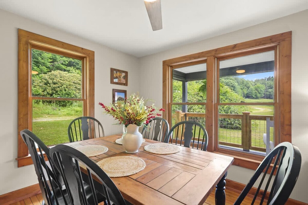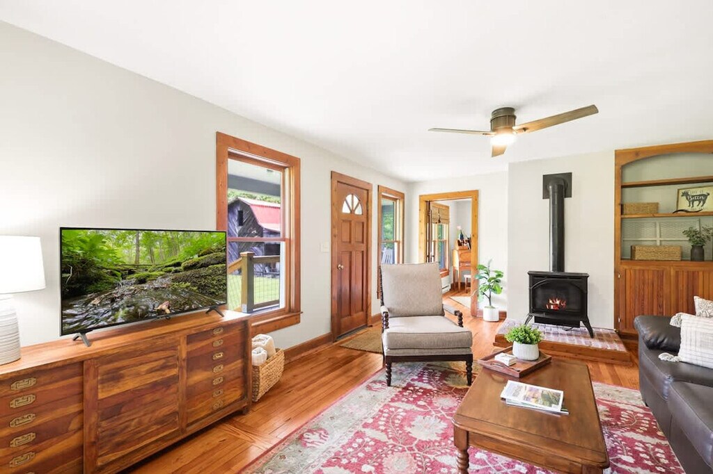 Welcome to the Banner Elk Farm House, an idyllic retreat on a picturesque working farm. Feel at home in the cozy living room with a gas fireplace and smart TV, a well-equipped kitchen with ample counter space, a comfortable study area for relaxation or work, three restful bedrooms with peaceful views, and two full bathrooms stocked with premium towels. Enjoy the large yard with partial mountain views, and take a short drive to Apple Hill Farm. Nestled on a picturesque working farm, the Banner Elk Farm House offers an idyllic retreat where you can unwind and soak in the serene beauty of the surrounding landscape. Whether you're enjoying your morning coffee on the porch or exploring the farm's lush fields, this charming farmhouse provides a perfect escape from the hustle and bustle of daily life. The living room invites you to sit back and relax with a comfy couch and a cozy fireplace, while the kitchen provides all the amenities you need to create delicious meals. Serve your home-cooked meals at the wooden dining table that comfortably seats six. Early check-in and late check-out are subject to availability with a $25 per hour fee. It is highly recommended to have AWD or 4WD while visiting during winter months. The Town of Banner Elk and its surrounding areas offer a quality of life that is sought by many today; a beautiful mountain retreat away from the busy crowds where one can still have access to the finer conveniences found in larger metropolitan areas. Banner Elk itself is a quaint mountain town located 30 minutes from Boone, home to Appalachian State University. This beautiful Avery County setting is surrounded by some of the highest mountains east of the Rockies, including Grandfather Mountain and Beech Mountain. The Blue Ridge Parkway traverses the county just six miles from town. Banner Elk is home to Lees McRae College and features a lively arts and crafts cultural scene, complete with an intimate pedestrian shopping district of upscale boutiques and outstanding restaurants. You'll have the opportunity to witness and appreciate the hustle and bustle of farm life, adding a unique and enriching element to your stay. Farm staff may be present during your stay. Smoking is not allowed. Quiet hours begin at 10 pm. There are neighbors who live full-time all around, so please be courteous.