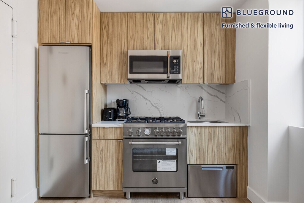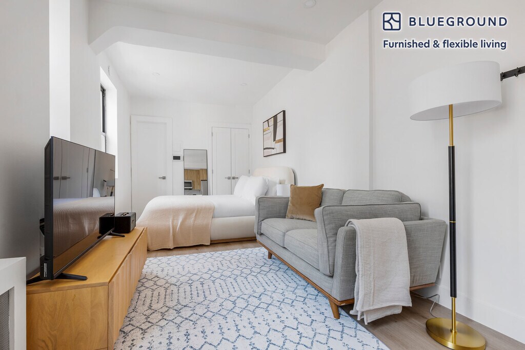 Show up and start living from day one in New York with this spacious studio Blueground apartment. You’ll love coming home to this thoughtfully furnished, beautifully designed, and fully equipped Murray Hill home. (ID #NYC2113) The advertised rate of $4,880/month is the lowest available price, based on a 11 month(s) and 29 day(s) stay with a move-in date of February 29, 2028. Rates vary depending on the duration of stay, season, and other parameters. For exact pricing and additional pricing components, please visit our website and enter your desired move-in and move-out dates. The rate is applicable when billed upfront; it can be higher if billed in multiple payments. Brokers are welcome to reach out. Were you looking for an unfurnished lease? Try Blueground instead and upgrade from unfurnished to furnished living: - Furnished at rates comparable to unfurnished - No setup or furniture costs - save thousands - Move-in ready - save time, just bring your suitcase Designed with you in mind Gorgeous furniture, fully equipped kitchen, smart TV, and a premium wireless speaker are just a few of the amenities you’ll find inside this studio apartment. Ideally located in New York, you’ll find a lot to love outside as well. When you’re ready to relax, you’ll be happy to discover every Blueground bedroom comes with superior quality mattresses, luxury linens, and cozy towels. We handle everything so you can simply show up and start living. This apartment also offers in-apartment laundry. Sleeping arrangements Queen Bed, 63in/160cm Amenities Building amenities unique to this studio apartment include an on-site: - Dryer - Elevator - Washing machine Arrival and ongoing support The entire apartment is yours to enjoy! Throughout your stay, you’ll have access to our Client Experience team through the Blueground App. You can schedule additional cleanings, submit maintenance requests, and view our neighborhood recommendations with just a few taps. We’ll share all details upon confirmation of your stay. Ideally Located This furnished apartment is located in Murray Hill, a lively Midtown neighborhood. The active nightlife scene makes it increasingly ideal for youngsters and recent graduates. Simultaneously, families are relocating here as there are many good schools in close proximity. Murray Hill offers various destinations for culture-lovers. Namely, the New York Public Library and Bryant Park draw residents in from the rest of the city. Grand Central Station is only 5 minutes from Murray Hill by subway. Other things to note This Blueground apartment has flexible lease options, allowing you to book it for one month, a year, or more. Brokes CYOF. We take great pride in ensuring every photo displayed is shot in our own units with our actual furnishings. That said, we regularly refresh our decor and furniture arrangement, which may differ from what’s pictured. Also note - The apartment's building is undergoing renovations, and you may hear construction noise inside your apartment from time to time [SI]