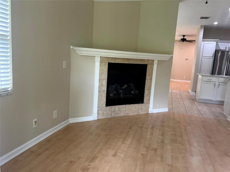 Don't miss this home in the highly sought after Victoria Park neighborhood. This beautifully maintained 4 bedroom, 2 bath home offers many impressive upgrades to include: a light and bright kitchen with quartz countertops, wood cabinets, and stainless steel appliances, split bedroom plan offering privacy, and a spacious primary bedroom with a large walk-in closet. Additionally, the home features an ensuite bathroom with dual sinks, a natural gas hot water heater, a natural gas fireplace, laminate floors, water softener, and a covered, screened lanai for those peaceful evenings. Come join in the Victoria Park lifestyle. Victoria Park is a very active community offering a variety of amenities to include resort style pools, fitness centers, lighted tennis and pickleball courts, and so much more. Victoria Hills is conveniently located with easy access to I-4, shopping, hospitals, our beautiful beaches, and our fun-filled attractions. Don't miss this opportunity to schedule your private showing. Call today for your tour of this beautiful home.