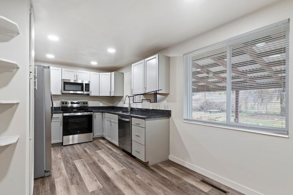 Beautifully updated 4-bedroom, 2-bath home in Clearfield featuring upgrades throughout. This home has been completely refreshed with new paint, updated flooring, new windows, remodeled kitchen and bathrooms, and more. The kitchen showcases granite countertops, stainless steel appliances, and modern finishes, while solid-surface flooring runs through the main traffic areas for durability and style. Outside, you’ll find a large detached two-car garage and a private covered patio, perfect for relaxing or entertaining guests. This move-in-ready home offers a great combination of modern updates and comfortable living space. See Website: To Set A Time To View This Property: Copy the link below or call . Offered By: ResCom Real Estate Management