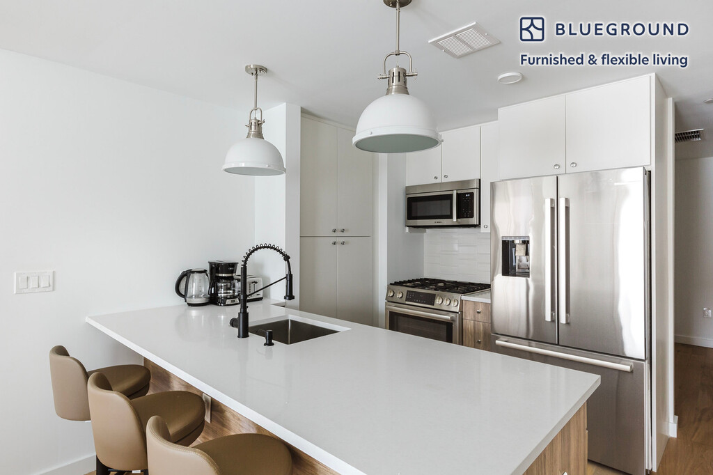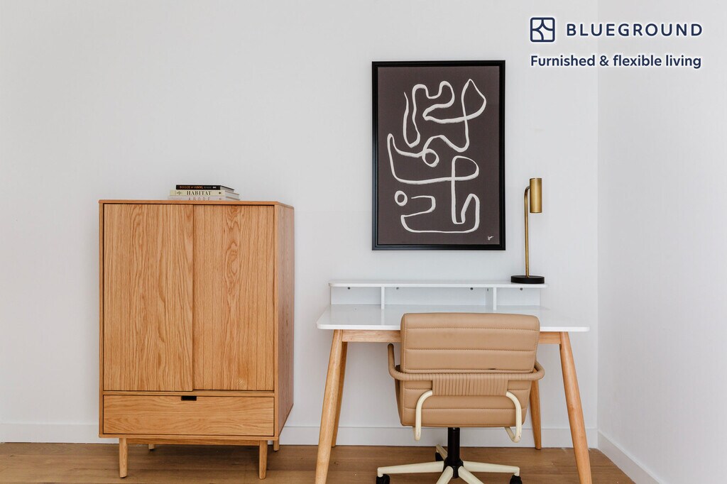 Discover the best of Jersey City, with this one bedroom apartment in The Village. It’ll be easy to simply show up and start living in this airy furnished apartment with its fully equipped kitchen, pretty living room, and our dedicated, on-the-ground support. (ID #NYC1535) The advertised rate of $3,750/month is the lowest available price, based on a 11 month(s) and 29 day(s) stay with a move-in date of February 8, 2026. Rates vary depending on the duration of stay, season, and other parameters. For exact pricing and additional pricing components, please visit our website and enter your desired move-in and move-out dates. The rate is applicable when billed upfront; it can be higher if billed in multiple payments. Brokers are welcome to reach out. Were you looking for an unfurnished lease? Try Blueground instead and upgrade from unfurnished to furnished living: - Furnished at rates comparable to unfurnished - No setup or furniture costs - save thousands - Move-in ready - save time, just bring your suitcase Designed with you in mind Thoughtfully designed with bespoke finishes, modern furnishings, and a fully equipped kitchen, you’ll enjoy that “I’m home” feeling with this Blueground apartment. Whether you’re lounging in your pretty living room streaming the latest and greatest entertainment on the smart TV or premium wireless speaker, or getting some well-earned rest on the superior quality mattress with luxury linens, you’ll fall in love with everything this The Village apartment has to offer. This apartment also offers in-apartment laundry. Sleeping arrangements Queen Bed, 63in/160cm Amenities Building amenities unique to this one bedroom apartment include an on-site: - Dryer - Elevator - Washing machine - Pets allowed Arrival and ongoing support The entire apartment is yours to enjoy! Throughout your stay, you’ll have access to our Client Experience team through the Blueground App. You can schedule additional cleanings, submit maintenance requests, and view our neighborhood recommendations with just a few taps. We’ll share all details upon confirmation of your stay. Other things to note Building amenities may have an extra cost. This Blueground apartment has flexible lease options, allowing you to book it for one month, a year, or more. Pets are welcome, though weight limits and breed restrictions apply and may incur fees. Brokes CYOF. We take great pride in ensuring every photo displayed is shot in our own units with our actual furnishings. That said, we regularly refresh our decor and furniture arrangement, which may differ from what’s pictured. [SI]