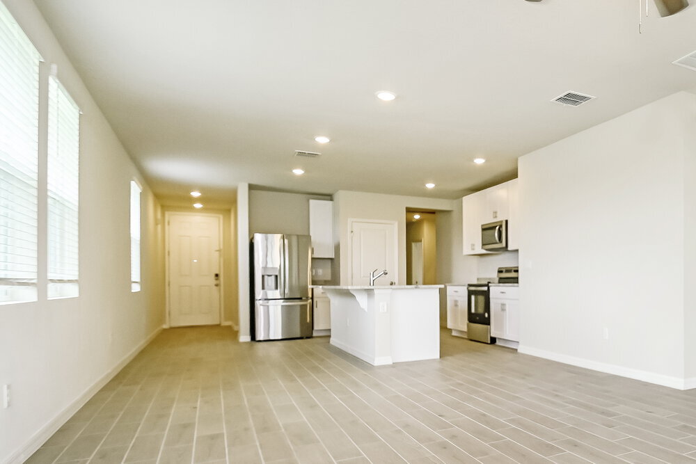 Tenga en cuenta que nuestras casas están disponibles por orden de llegada y no se reservan hasta que el arrendamiento sea firmado por todos los solicitantes y se cobren los depósitos de garantía. ¿Quieres hacer un tour por tu cuenta? Haga clic en el botón “Mostrarse” en la lista de esta casa o llame para registrarse para una presentación autoguiada en el momento que mejor le convenga. Enamórese de esta casa de alquiler Parrish de 146 metros cuadrados que le ofrece cuatro dormitorios y dos baños junto con un garaje para dos automóviles. El vestíbulo lo lleva al espacio abierto compartido por la cocina, el comedor y la sala de estar. La sala de estar cuenta con una luz de ventilador de enfriamiento, un atractivo piso de baldosas y una puerta que se abre a un patio con césped. La cocina cuenta con hermosas encimeras de granito, una gran isla con dos lavamanos y barra de desayuno, y electrodomésticos de acero inoxidable, que incluyen una puerta francesa de refrigerador. Le encantará el tamaño del dormitorio principal y la privacidad del baño en suite. Allí encontrará un tocador con dos lavamanos, una ducha independiente y un vestidor. Programe un recorrido por esta casa de inmediato.
