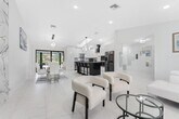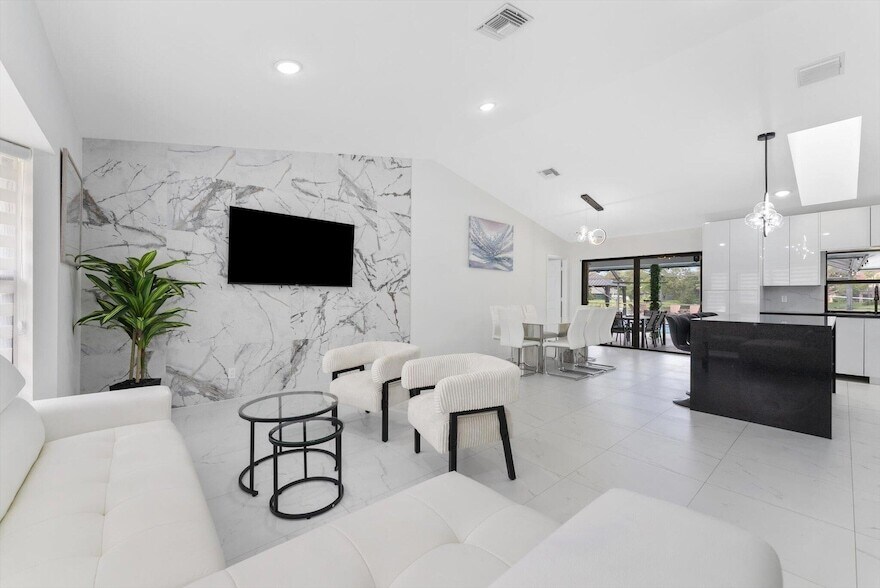 Beautifully renovated, Contemporary 5-bedroom single-story home with serene lake views from front to back! Move right in and feel like you're on vacation. Modern open kitchen w/ chef's island, natural stone counters, stainless appliances, luxury cooktop with vent hood. Spacious family room and Dinning area connected to kitchen. Primary suite with large walk-in shower, electric fireplace for luxury spa vibes and custom walk in closet. Expansive screened patio with heated pool, covered lanai, and full summer kitchen. Beyond the screen pool is a large backyard overlooking panoramic lake views. Split floorplan. Guest suite with private bathroom + 3 additional bedrooms & cabana bathroom. Accordion storm shutters on the windows, Updated AC & WH, New pool heater, whole-home Generac generator.