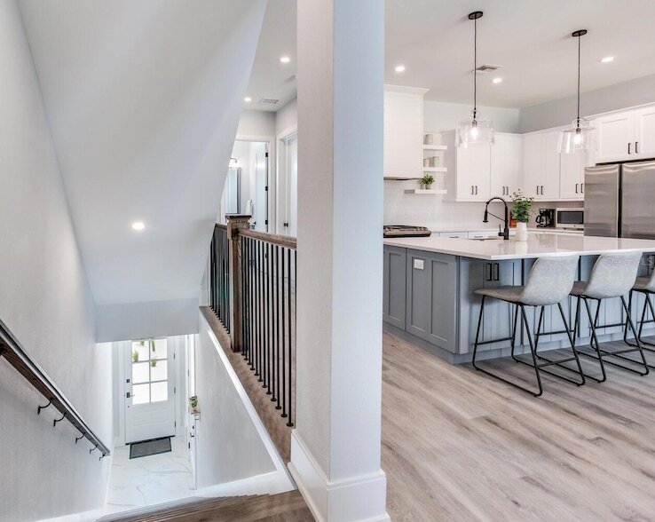Built in 2024 with meticulous attention to detail, this beachside townhome delivers true luxury living just moments from the shoreline. Thoughtfully curated furnishings and decor add to the value of this home. Volume ceilings and natural light frame a spacious great room that integrates a chef s kitchen with premium appliances, sleek cabinetry, expansive prep space, an entertainer s dream. The flexible four-bedroom layout is anchored by an exceptional owner suite featuring a grand double-door entry, private balcony, generous walk closet, and a spa-inspired ensuite with a large walk-in shower. Outdoor living extends across multiple balconies, while the oversized garage accommodates up to four cars and still leaves room for a workshop, gym, or media den. Every finish has been curated for quality and longevity, from the flooring and fixtures to the hardware and lighting, creating a refined coastal retreat where comfort, style, and convenience actually get along for once.